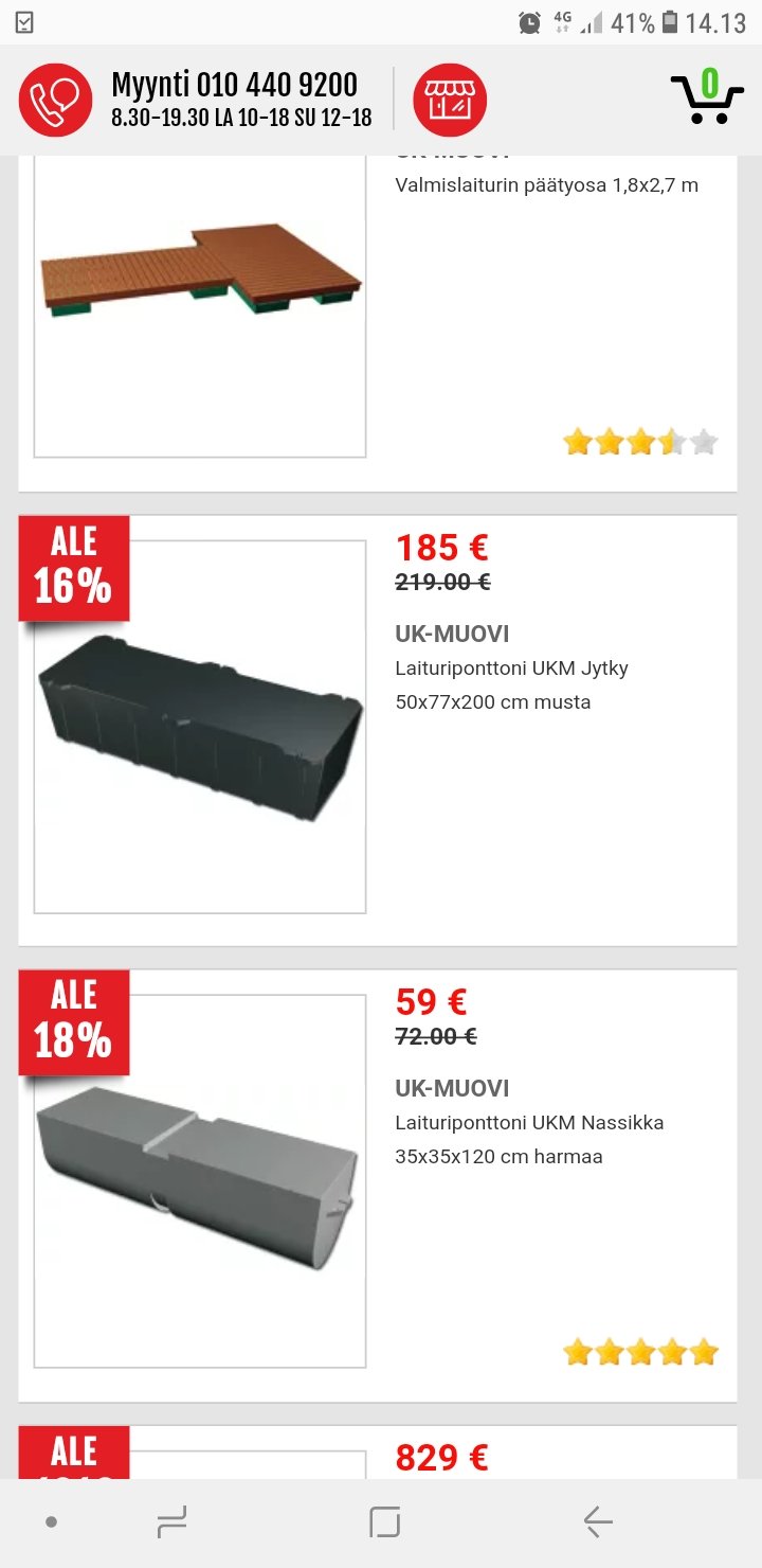 Itsekin päädyin täältä luettujen kokemusten perusteella Jytkyihin (jotka tosin vielä odottavat asennusta). Ainoa "huono" puoli tuossa suurimmassa koossa on ainakin meidän tapauksessa korkeus- ja leveysmitat: meillä jää vajaasta kymmenestä sentistä kiinni että kaksi ponttoonia saisi ruumaan päällekkäin ja sama n. kymmenen senttiä siitä että ne voisi laittaa vierekkäinkään samaan väliin.