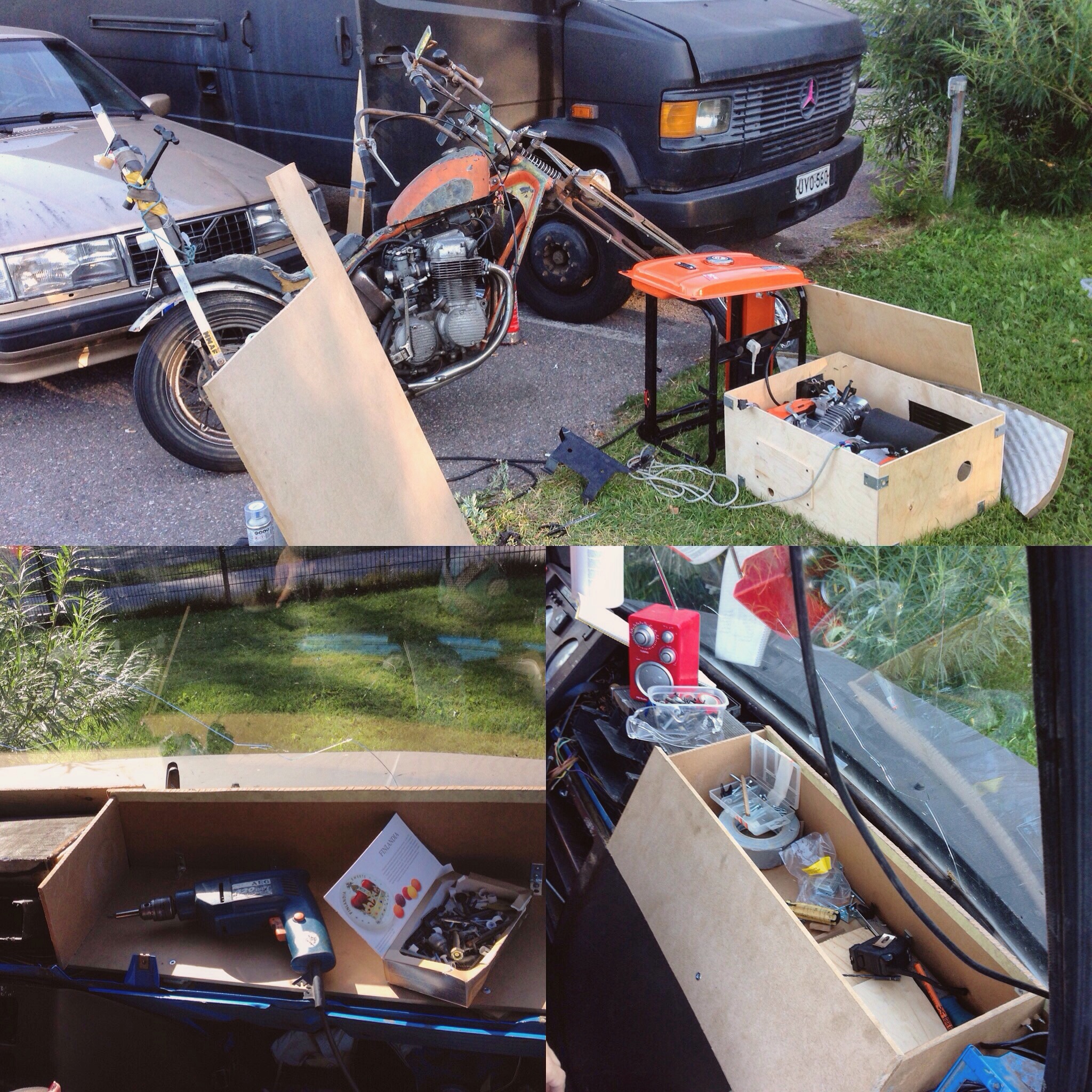 Ideana olisi että se olisi kiinteänä eikä tarviisi roudata sitä mihinkään, et jos auton tuuletin onnistuu pitää auton moottoria viileempänä niin uskon että Agregaatti pysyisi kanssa viileämpänä sillä