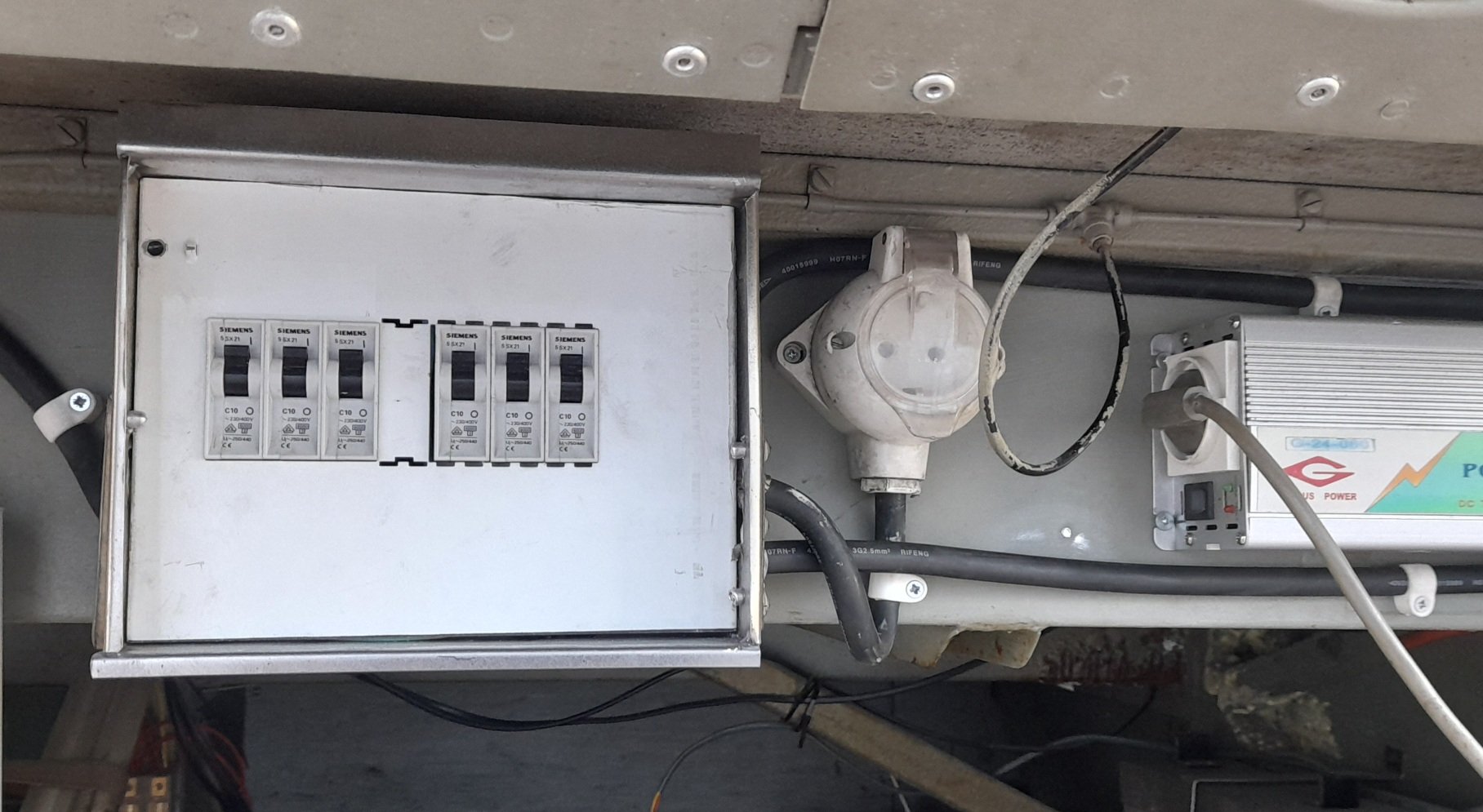 No perskeles. Eipä sähkäri joka oli kaverina hoksannut moista. No, tämä reissu mennään näillä ja vaihdetaan kotona oikeat tilalle. Samalla laitan yhden 2os. Rasian ajoakuille latausta varten. Käytän 2x 12v latureita.