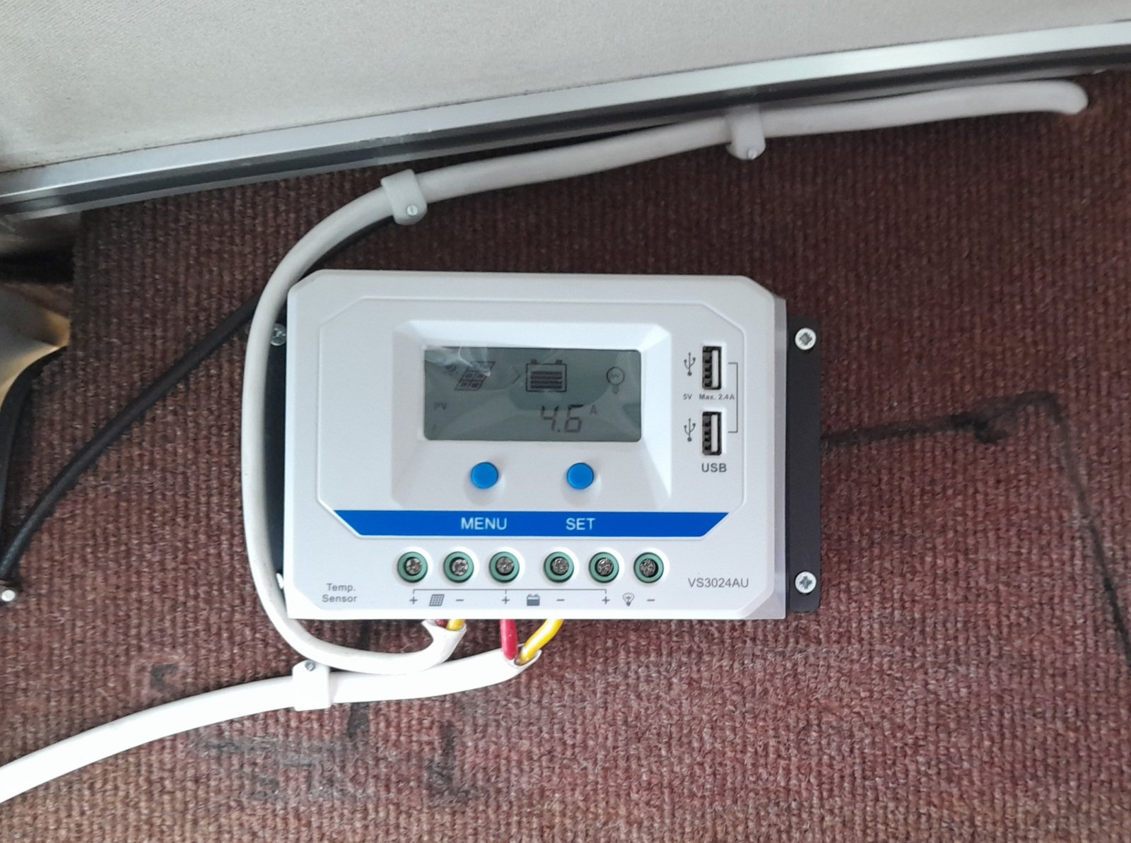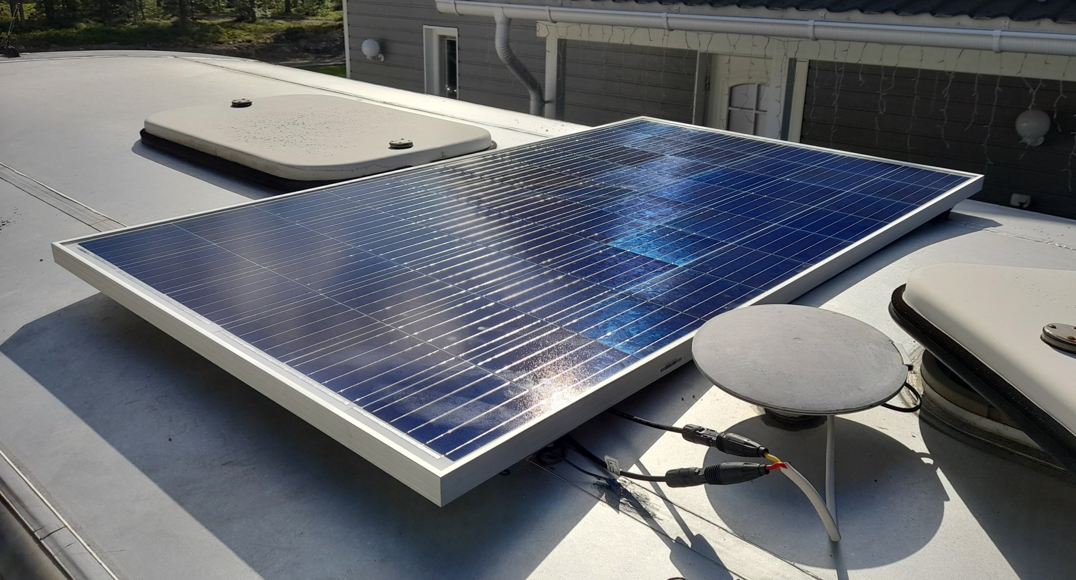 Nyt on aurinkoenergiaa, sen verran että riittää meille. Säädin vaihtuu vielä parempaan kun saan uuden tilattua. Joku piti saada paikoilleen että pääsi liikenteeseen.
