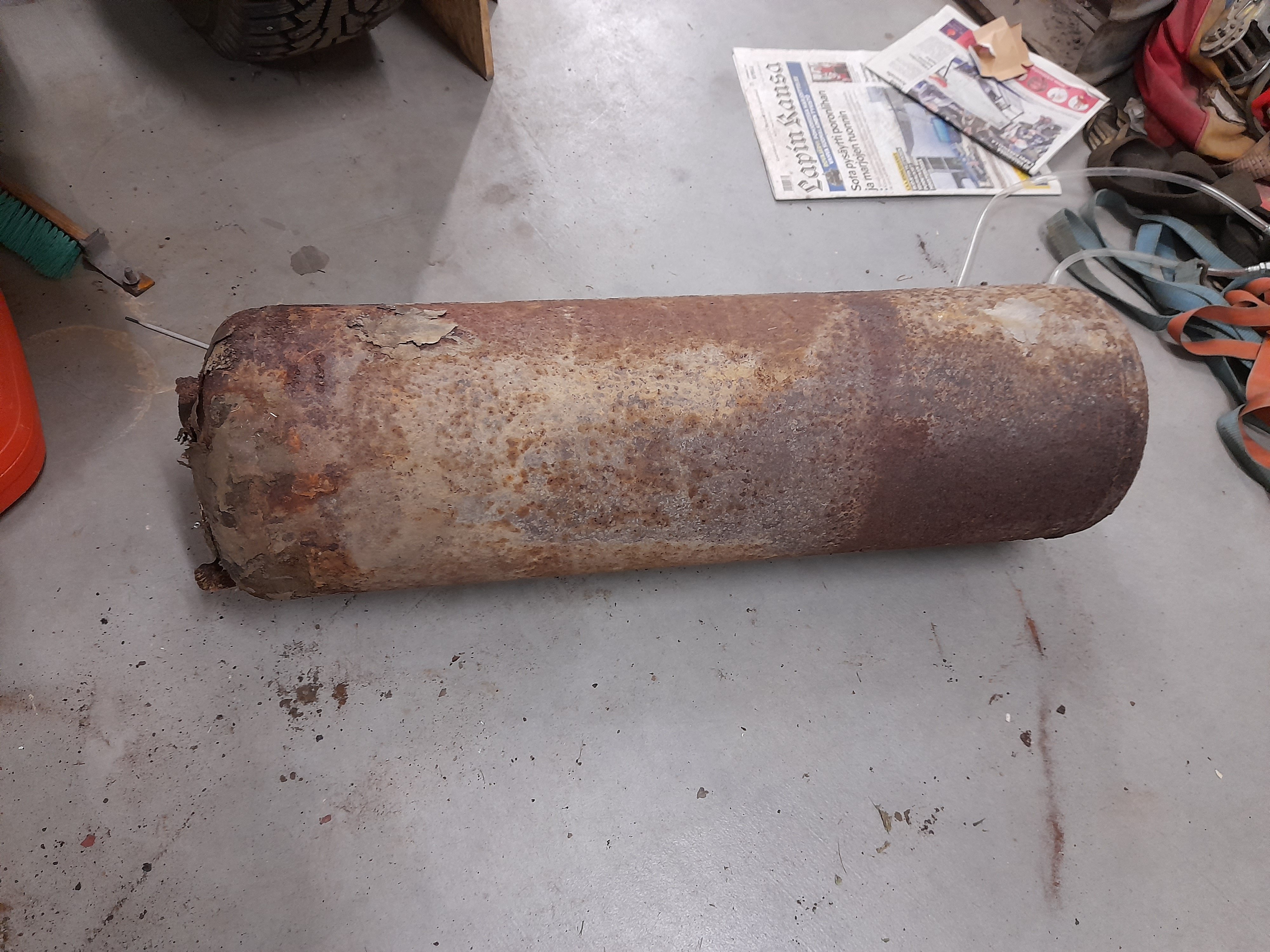 Vanha säiliö oli paikoin paksussa ruosteessa. Mutta ei vielä pahin mitä olen nähnyt