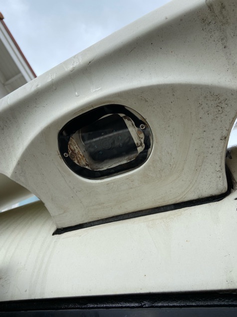 Sain kuitenkin fiksattua peruutuskameran valmiiksi. Jos haluaa hifistellä niin myöhemlin voi rajata tuon akryyli-ikkunan valkoisella tarralla tms. Nyt se on kuitenkin tiivis, ja paljon parempi kuin alkuperäinen. Tässä on infrapunavalaistus pimeänäköä varten, joten alkuperäinen avaimenreikäikkuna ei riittäisikään.