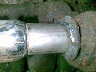 Katotaas saanko puhelimesta kuvan. Tässä down pipe kun vanha irtosi ahtimen laipasta, eikä laippaa saanu irti... Kai tuon paremminki vois hitsata, mut riittää mulle. Enkä ois saanu täytelangalla kiinni. Eli kempin invertteri hiilidioksidilla. Kävin muuten täyttää oman pullon, 15e ja taas vuosi hitsataan!