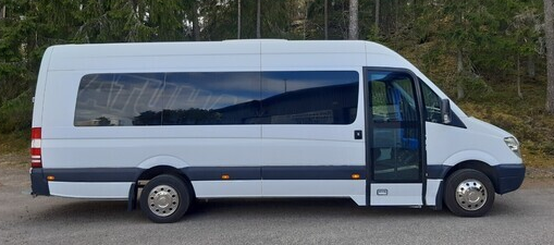 Tuollainen Can-väylä on ajautumassa pihaan. Nätti sisältä ja päältä. Ollut 9-vuotta samalla liikennöitsijällä. Lämmöllä pidetty ja vain metri-kaks ajettu vaihtokoneella. Todella mukava ajaa ja penkit voi järjestellä mielensä mukaan kiskoille. Otteessa on 16+1 ja maininta, että 9+1 voi myös käyttää. Tavaratilan seinä on pikalukoilla ja kokoa voi muuttaa.