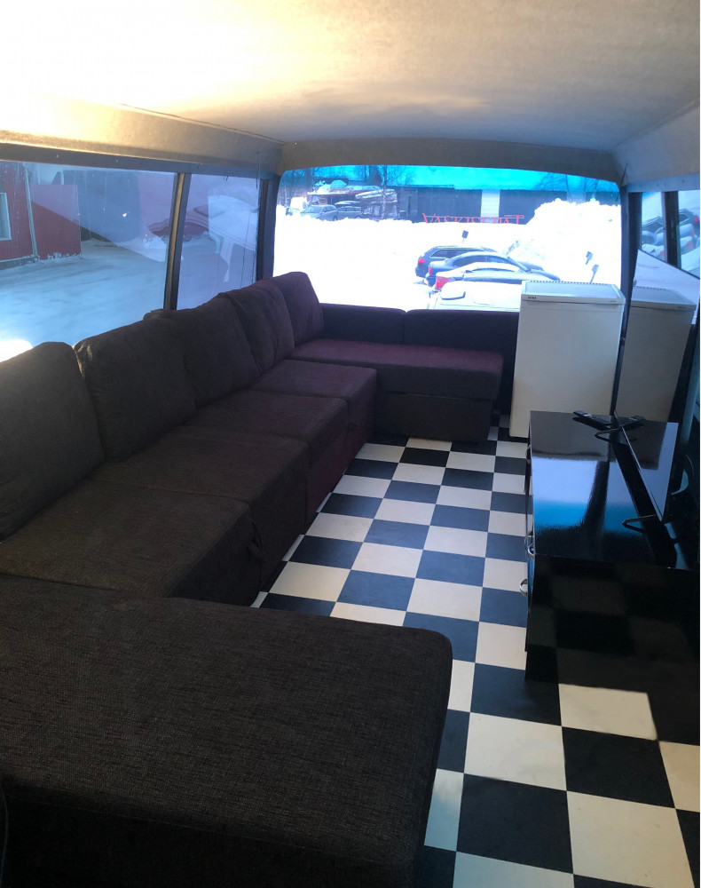 Tälläinen projekti starttasi syksyllä -21. Tarkoitus olisi saada valmiiksi niin, että pääsisi jo keväällä käymään reissussa. Vielä olisi rakennettavana WC ja jostain pitäisi löytää vähintään 6m pitkä markiisi toiselle kyljelle ja tietenkin kuten näihin projekteihin kuuluu, sähkötöitä enempi kuin jaksaa järki käsittää.