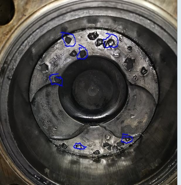 Turboistahan nuo muruset usein liikkeelle lähtee. Noissa kuvissa tosin näyttää olevan jälkiä isommista palasista, voisko olla jopa tuon männän paloja tai männänrenkaan murusia??? Vesi saa ihmeitä aikaan, jos sitä pääsee männän päälle yhtään enempää. Rempan koon arviointia varten kannattaa nyt tarkastaa männän korkeus kansitasoon nähden, eli onko nestepuristus pannut kiertokangen mutkalle? Sylinteriputken halkeaminen ei liene kyseessä, kun se yleensä tekee jäähdytysjärjestelmään niin suuren paineen, et jotain sieltä puolelta hajoaa?? Jos se välijäähdytinkin on siis ehjänä edelleen?