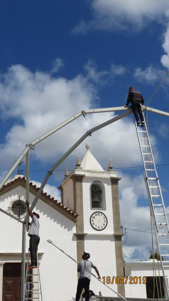Päivän ohjelmassa oli miten Portugalissa pystytetään esiintymislavan iso kupooli. Suomalainen työsuojeluvaltuutettu kuolisi sydänkohtauksenn jossennäkisivät. Siis kiellän heille näyttämästä.