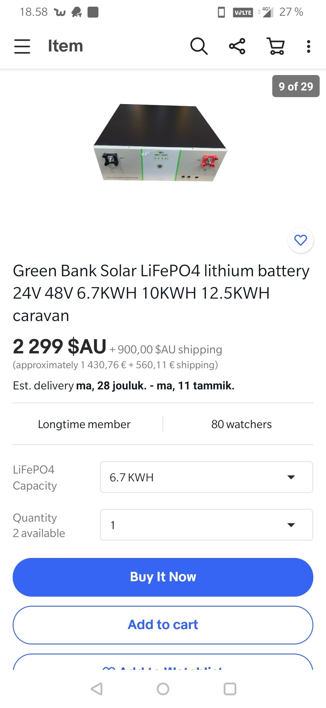 Aliexpressissä (ja vast) on myynnissä useankin valmistajan halpis lifepo4 akkuja, mutta mitä noita ovat availleet, niin lopputulos on yleensä melko juosten kustu. Käytännössä siis ostamalla erikseen kennot ja BMS:n siitä tulee ainakin itse kustu, mutta edullisempi ja huoltoystävällisempi. Sen akkupaketin avaamiseen tarvitaan yleensä sahaa/rälläkkää/kirvestä/talttaa jne...