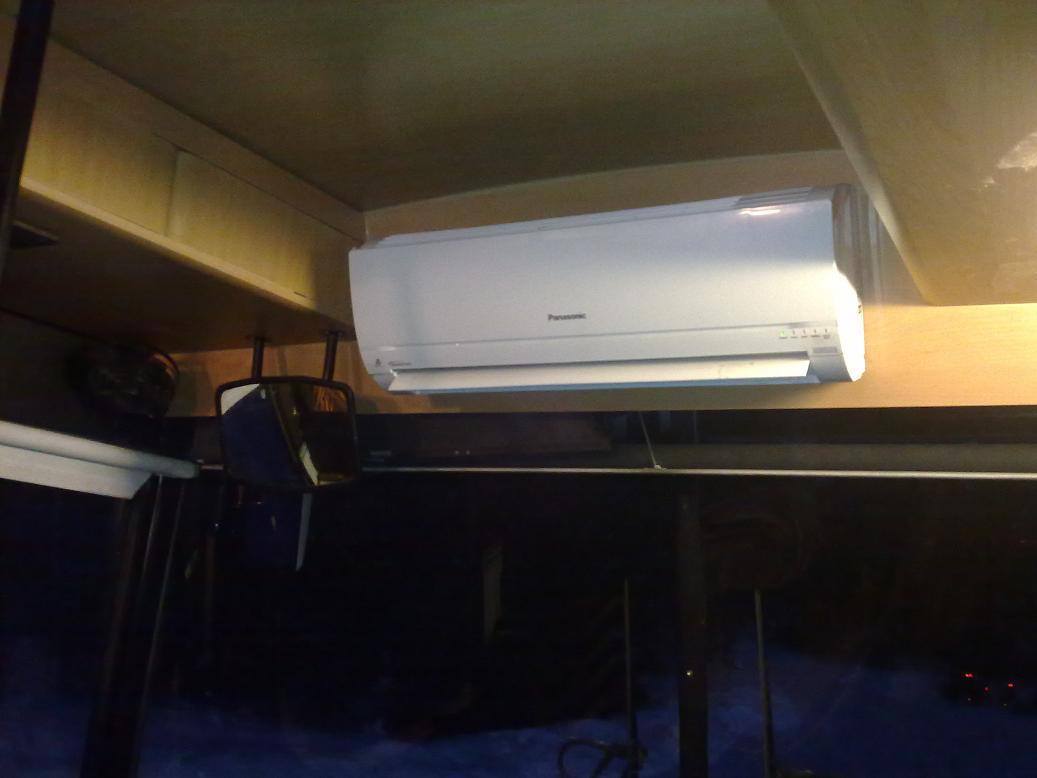 Minä suunnittelin eilen Tampereella koritehtaalla käydessä että laitan keskelle autoa katolle Dometicin suurimman ilpon...1 reikä vaan kattoon ja sähköpiuha sille ja avot.!! Sisäyksikkö puhaltaa 4 ään suuntaan ja on vieläpä siistin näköinen :D