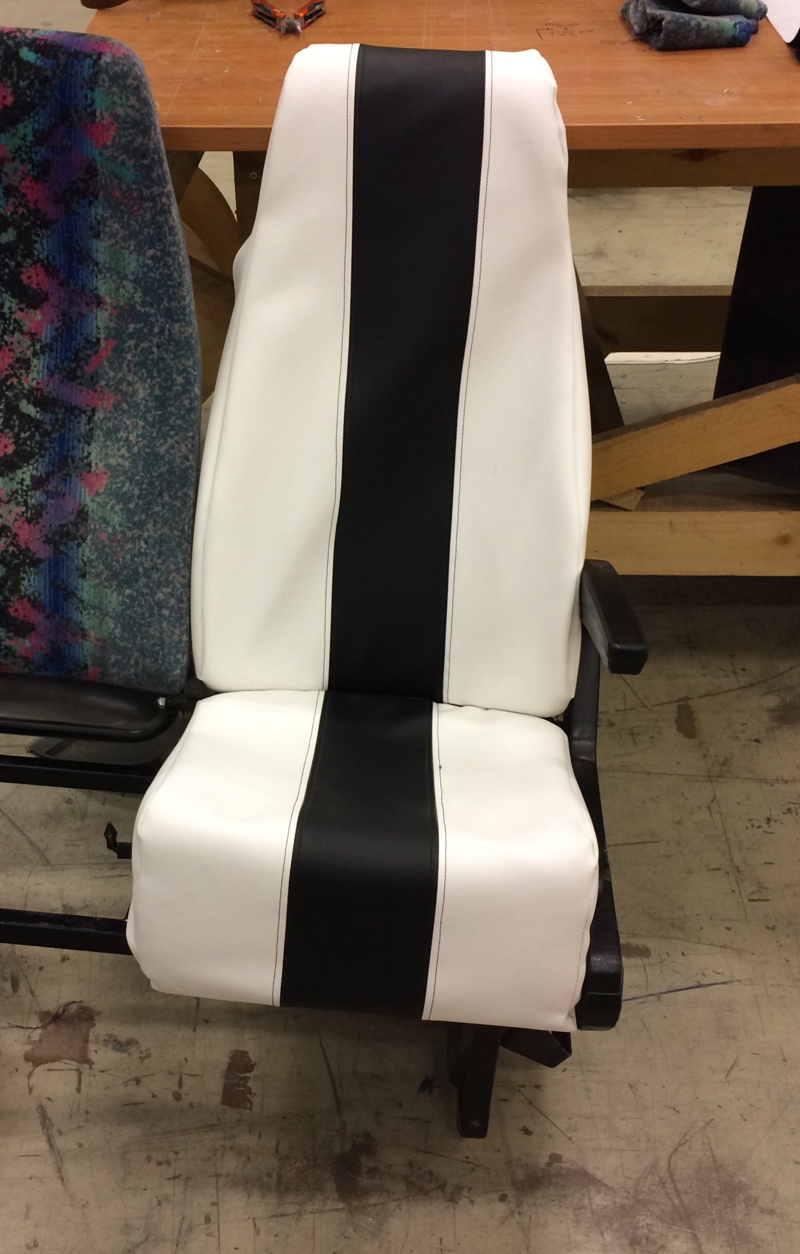 Tänään tuli testattua sorminäppäryyttä kun ostin tuollaisen vanhan teollisuusompelukoneen ja opettelin vähän keinonahan ompelua. Siitä kuva liitteenä. Nahkaa ei ole vielä niitattu tai venytetty penkin päälle, siksi pussittavat vielä, näkee kuitenkin että tulee istumaan ihan kohtuullisen hyvin. Itse ainakin olen tosi tyytyväinen kun oli absoluuttisesti ensimmäinen asia mitä olen koskaan ommellut. Penkeistä ri välttämättä tule juuri tuollaisia, sattui vaan olemaan valkoista ja mustaa tekonahkaa saatavilla harjoittelua varten.