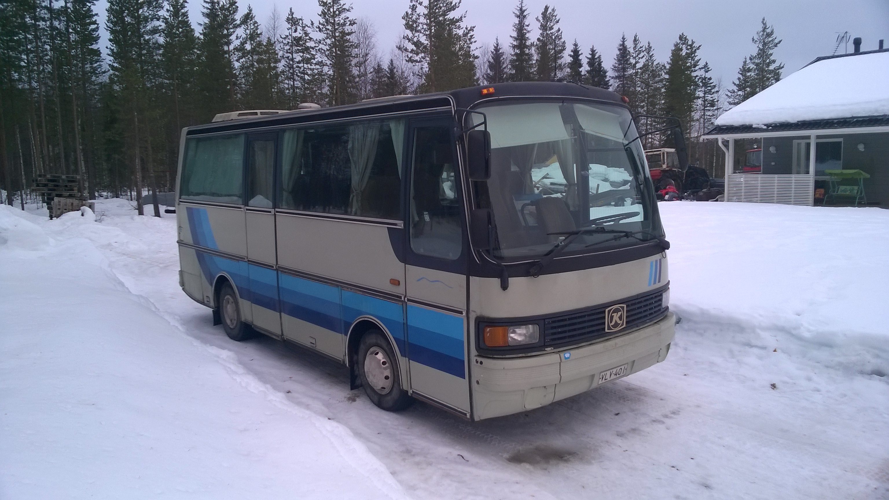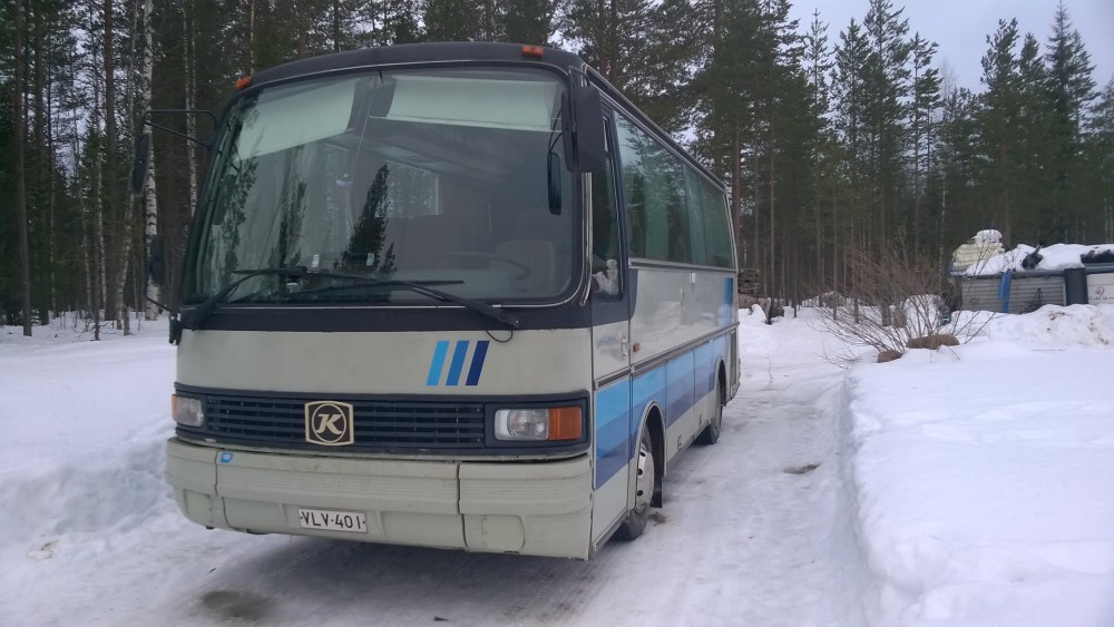 Mittailin tallin oven korkeutta suhteessa bussiin, pitäisi mahtua kun ottaa lisälämmittimen pois katolta.
