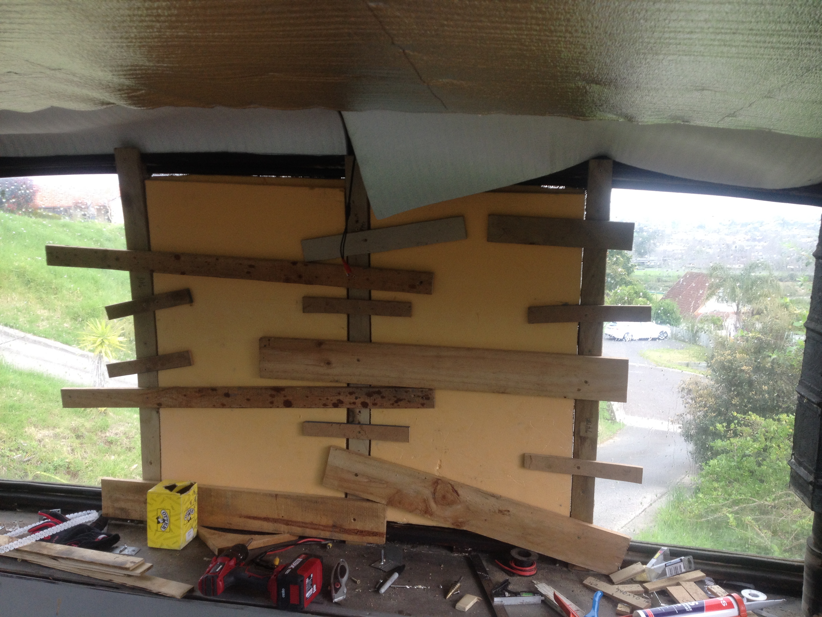 Kannettiin mylly bussin viereen ja jo alko foaminviipalointi helpottuu. Joka päivä mietin, kuinka toi ois Suomessa rakennettu jo kauan sitte. Nää ei oikeesti ymmärrä täällä mitä on eriste. Joka kerta Bunningsin (Starkki) tiskillä täytyy vastata "mikä toi o" -kysymykseen ku kannan XPS-levyn niitten omasta hyllystä siihe. "Insulfoam" hakusanalla löytyy niitten tietokannasta, että tiedätte sit ku sattuu omalle kohalle...