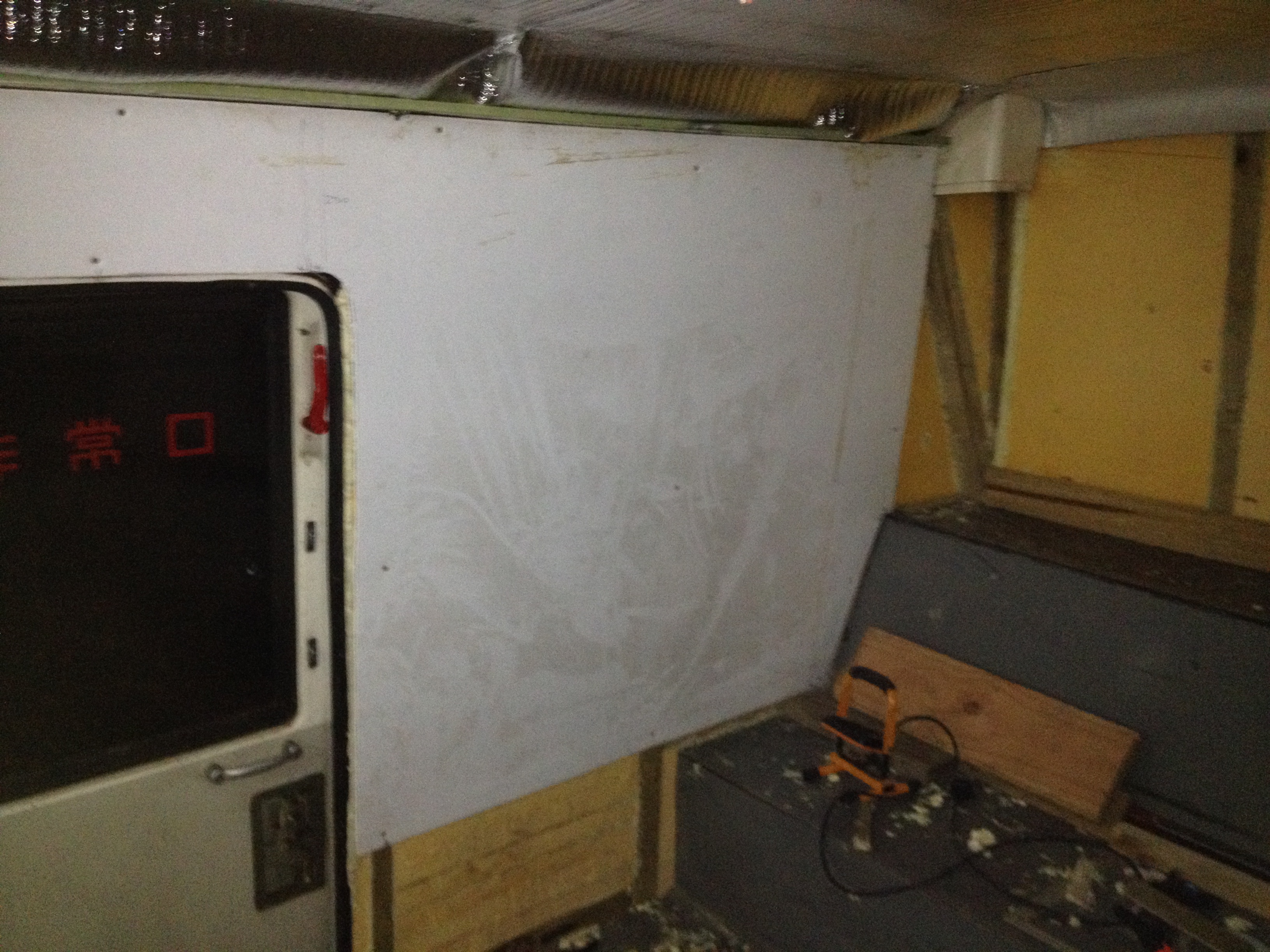 Faneerit hajettu. Oliki yllätys ku luulin hakevani jotain vähän huonompaa, mut näissä onki valmis, virheetön ja hiottu pinta ja seittemän kerrosta. Loput tän osaprojektin seinistä eristetty. Auto on siis puoleen väliin asti levyjä vailla. Etuosa jää vielä auki, koska turvavyösäätö. Muute ookoo.