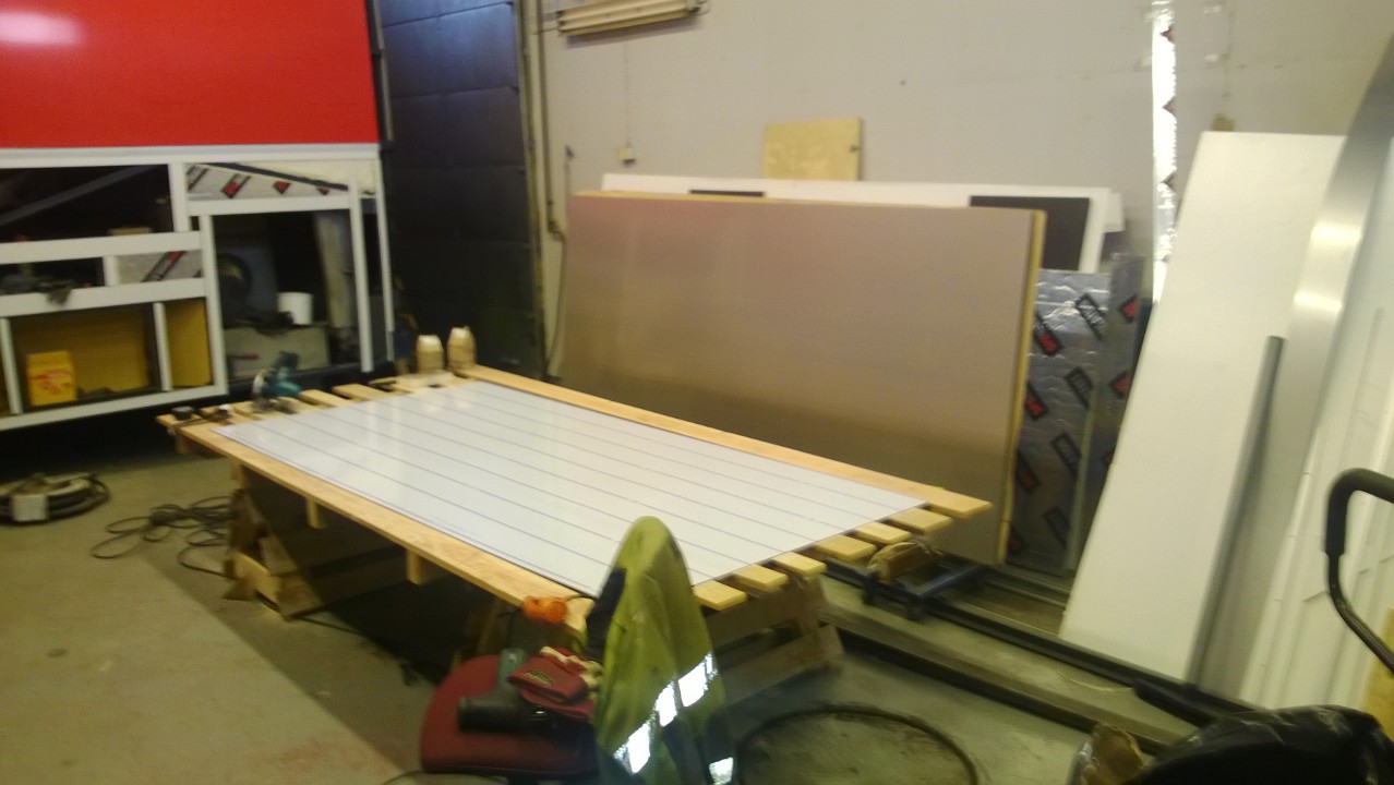 Sittenpä ku noi kiinteet pellit ol tehty ni...mää liimata pläjäytin ne kaverin kaa...