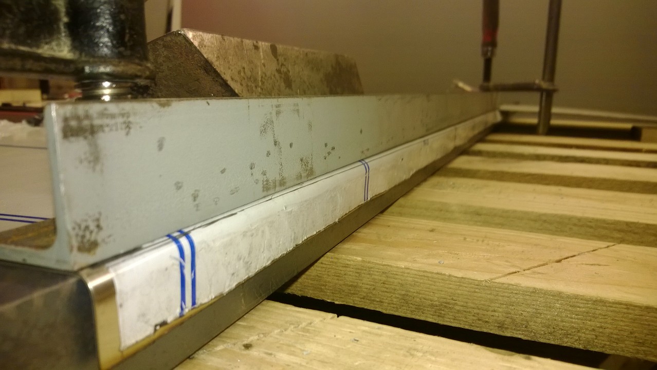 Siinä on mun "kanttikone"...:D voin kertoo että...tolla metodilla noi kanttaukset ei tosiaankaan "hio täydellisyyttä" eli melkein jokainen vasaran isku näkyy... (paitsi viimeisissä naputteluissa... toisessa kyljessä...sillon oli jo sen verran "metrejä" takana...:D )