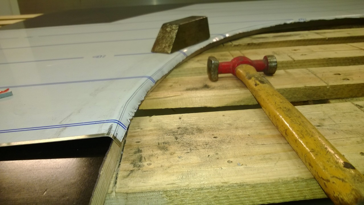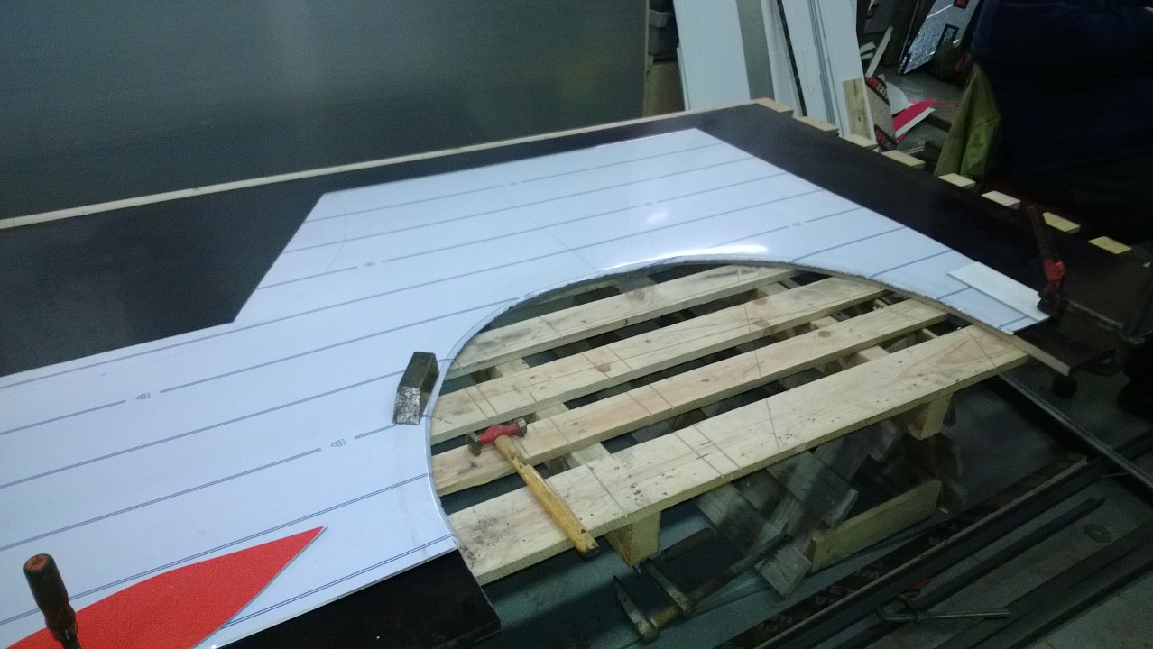 En sitte millään muotoo omassa päässä keksiny että miten saisin "pyöreetä" kaarta aikaiseksi... ni tein 21mm vanerilevystä tommosen "sapluunan/vasteen"... :D (ja taas joku metallimiespeltiseppäammattilainen nauraa... :lol: ) no ei se mitään... niin oon mäkin monta kertaa nauranu itelleni... välillä porukassa ja välillä itekseni...:D (eräs kaveri sano et "onneks toi hulluus ei oo tarttuvaa"...mut ei vastannu ku kysyin et "hulluus vai tyhmyys" ) :lol: