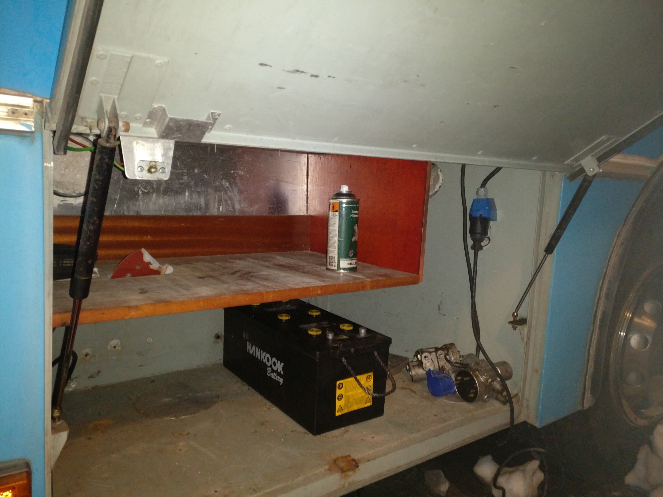 Apumiehen puolella on sivuluukku kohta etuakselin takapuolella. Sinne saisi sopimaan ainakin sen suunnitellun 4*225Ah akuston ja päälle jäisi vielä jonkinmoinen romuhylly/tila ilmawebastolle.