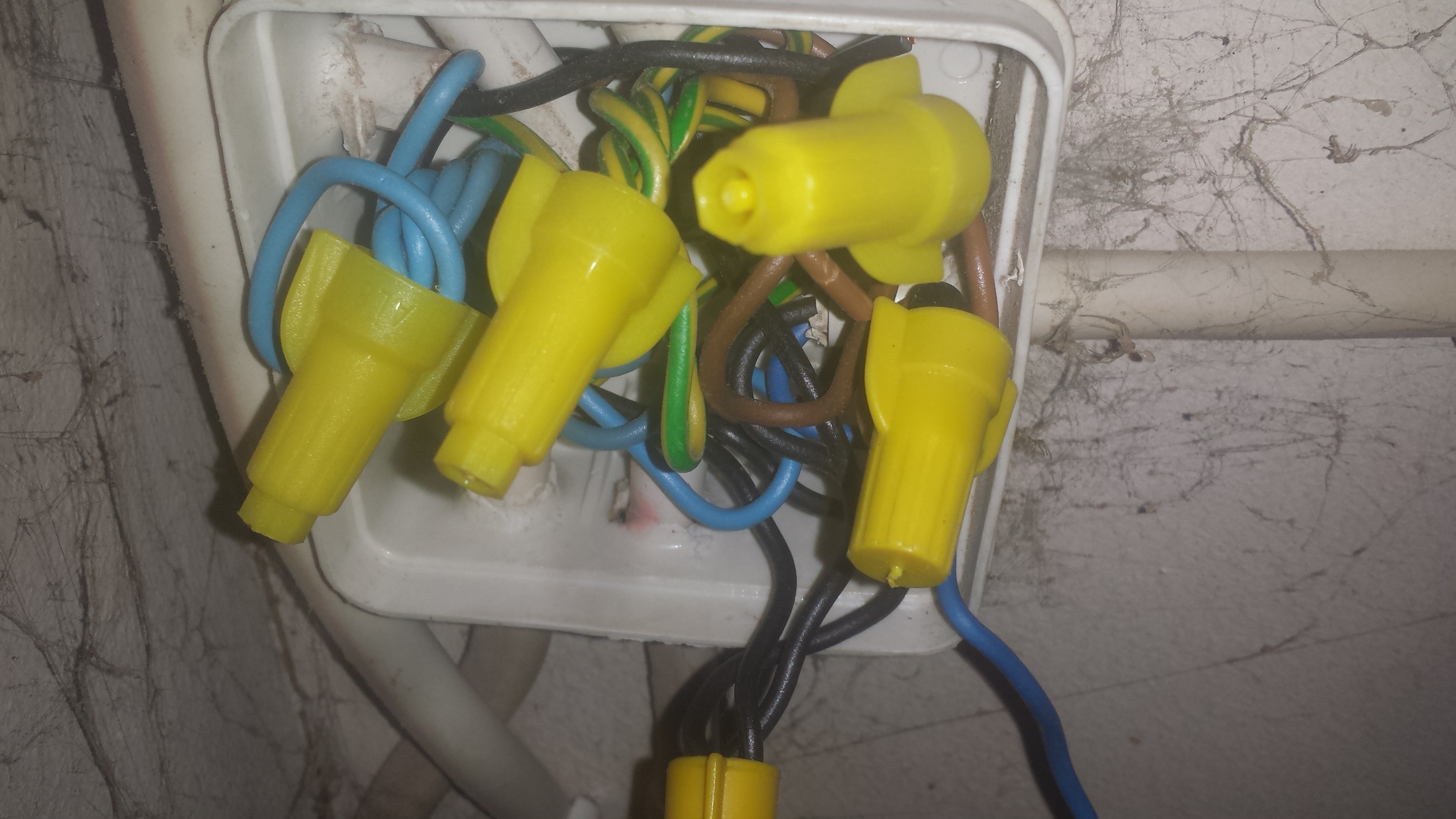 Itse suosittelen noita "piippuliittimiä", etenkin jos on enemmän kuormaa.. http://www.taloon.com/kytkentaliitin-6m ... 1923055/dp Näyttää niitäkin tuolla rasiassa olevan. Kerran olen kellarissa saanut sähköiskun kun tuollaisesta pikaliittimestä irtosi yksi johdin ja loikkasi peukaloon..