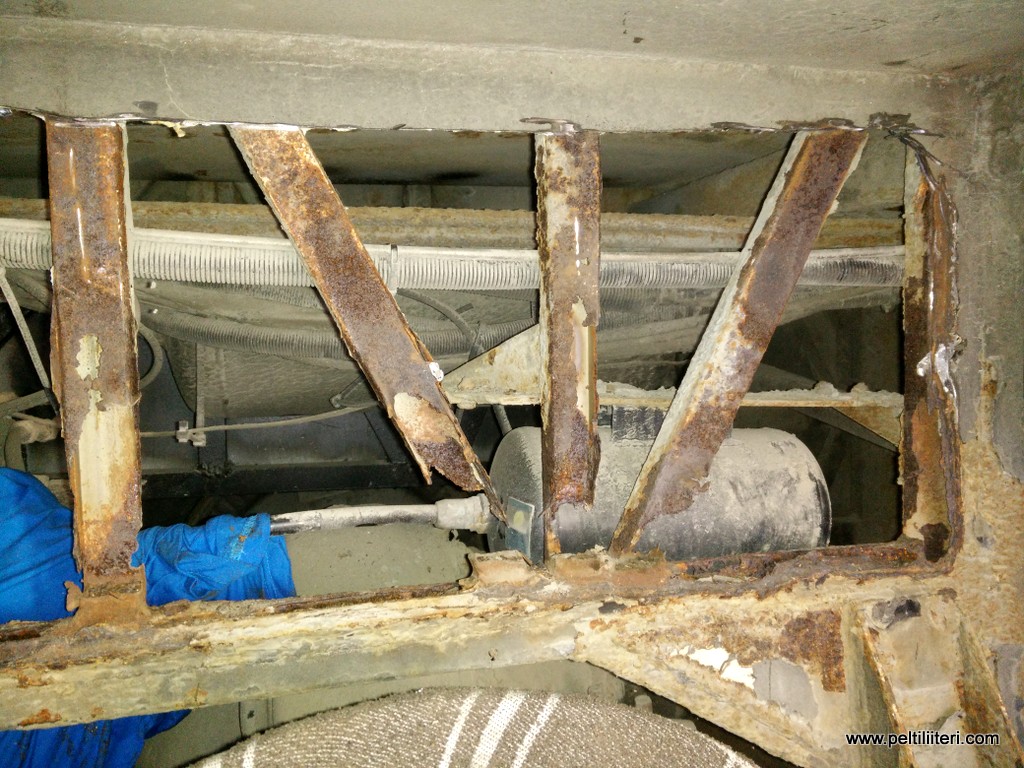 Rungon alta katsoen näytti, että pari pikku reikää olisi. Korjausmetodina ajattelin samaa kuin toiselle puolelle, eli takafillarit vex, sisälokari vex ja sitten pikku paikko.
