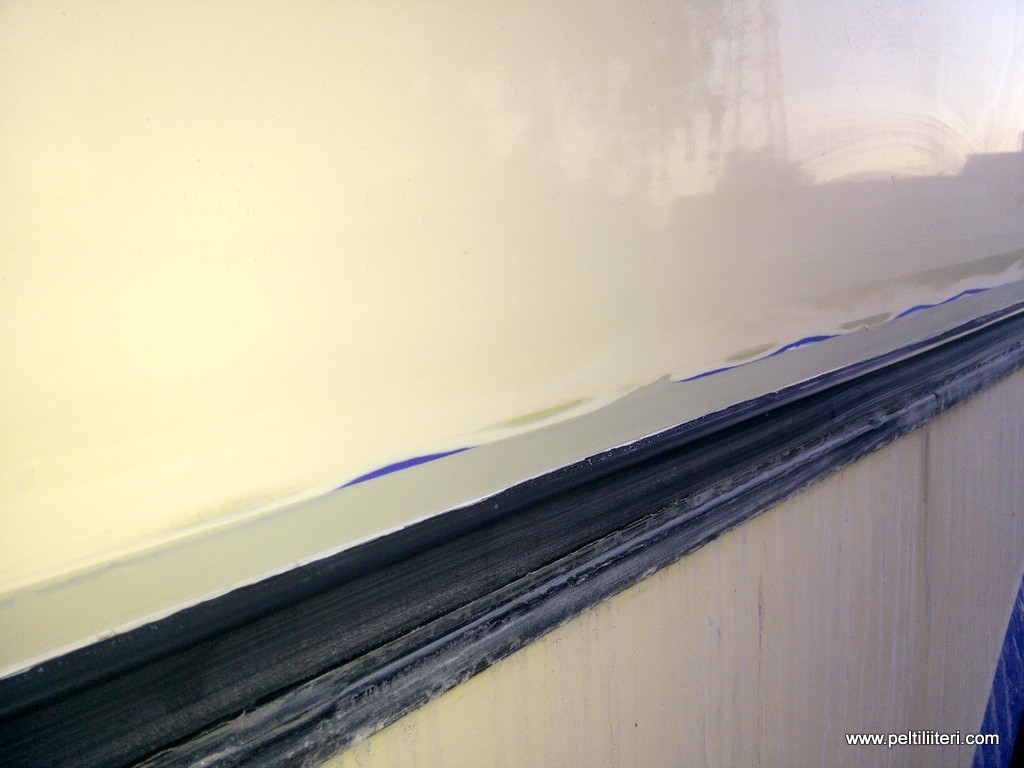 Minä tein nuo pellit alumiinista ja poppareilla niittasin palkkeihin. Saumoihin pienet kulmaraudat ja tiivistys butyylillä. Kuorrutukseksi runsaasti alustamassaa.