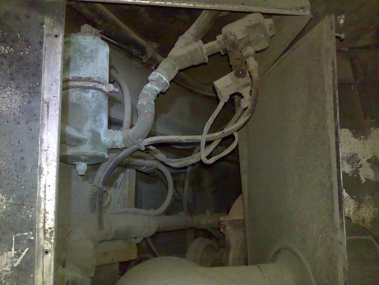 Tutkimus jatkui sitten konetilaan ja siellä putkia seuraamalla löytyi kuvan mukainen aparaatti. Tämän läpi menee neste matkustamoon joten oletan että se on se matkustamon lämmönsäädön toimilaite. Mitään muuta en putkista löytänyt. Sijaitsee moottoritilassa moottorin yläpuolella.