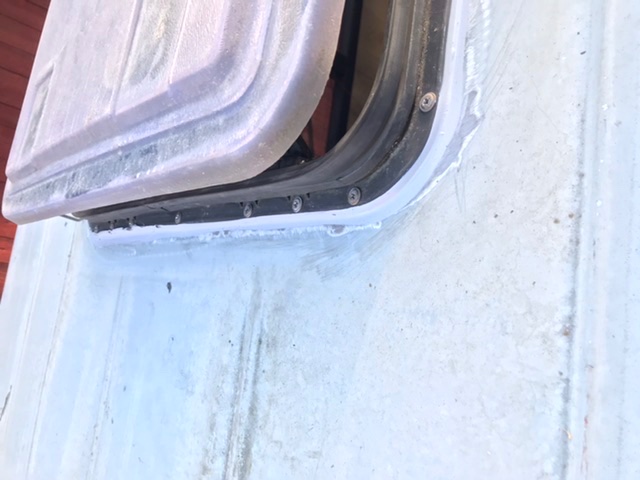 Saumoihin tupla tiivistys. Aqua proof repair vaikuttaa ihan pätevältä tuotteelta. Vaikea levittää ja sitten tarkkana... itsellä taitaa vaivata lukihäiriö kun alkydi maalia luulin akryylimaaliksi. Toisen kyljen kattosauman ehdin vetään ja seuraavana päivänä ihasteleen työnjälkeä. Näytti hyvältä, mutta sauman kohdalta ei oo kovettunut. No seuraillaan mitä tapahtuu ( eli en ihan heti viiti kaapia mönkiä pois). Näitä sattuu meille ammattilaisille!