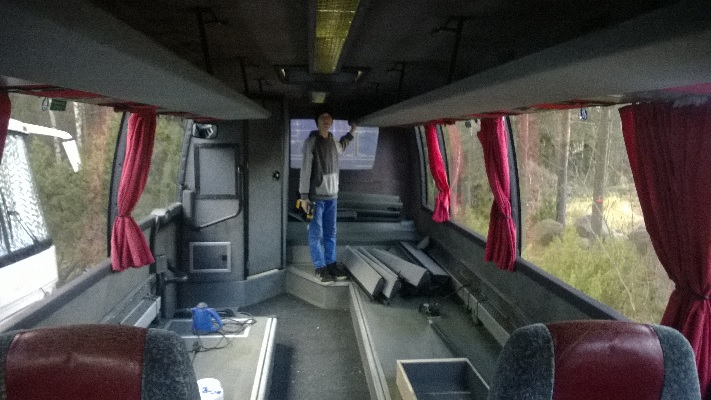 Huomenna lähtee penkit Viroon verhoiluun ja tekninen boksi kasataan ruuman etuosaan.
