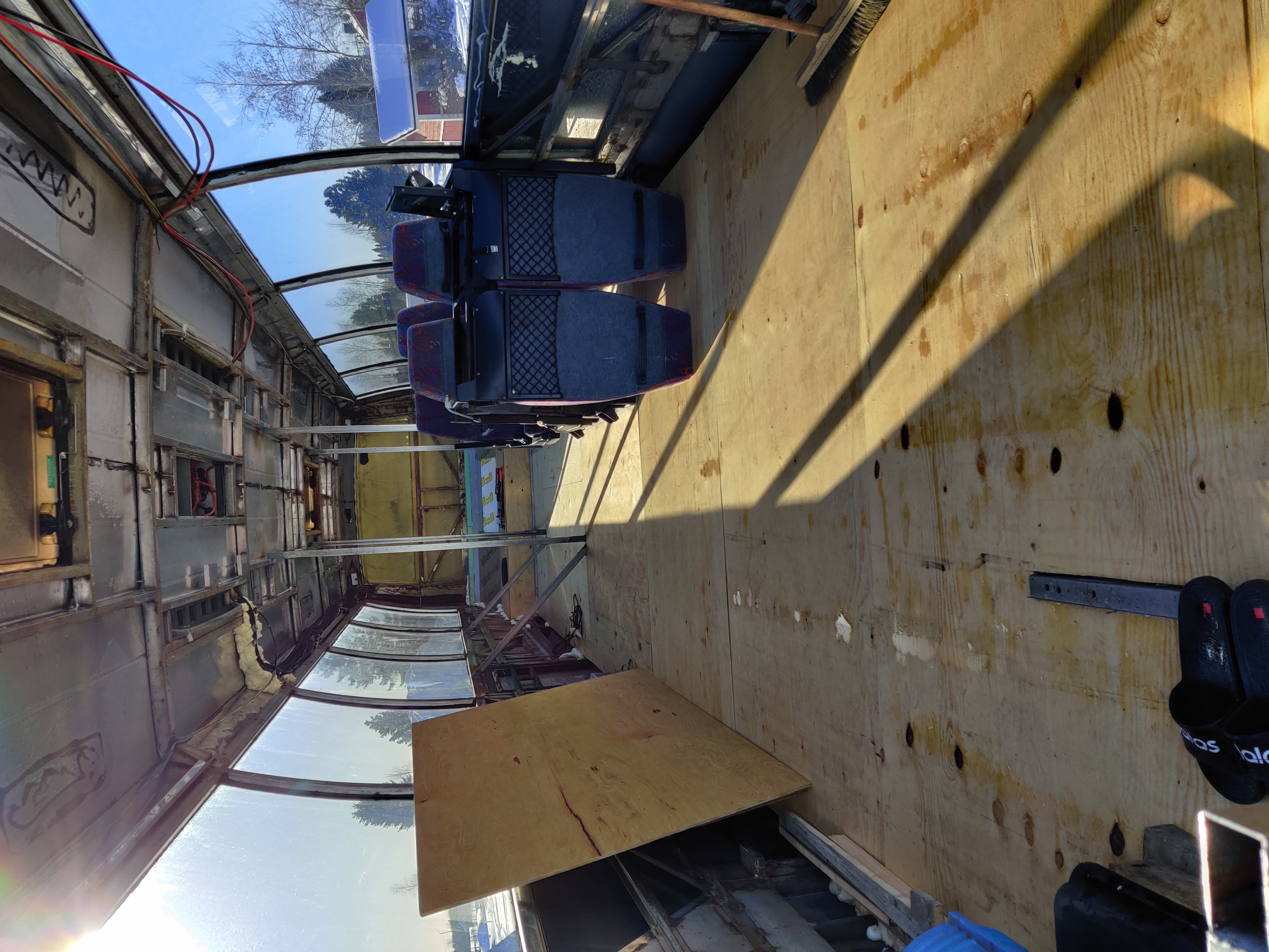 Vielä mietinnässä että tuleeko alummaisen vanerinpäälle lämmitysputkien väliin ja päälle vaneri vai kipsilevy.