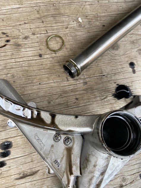 Ei välttämättä tunnistaisi samaksi osaksi. Kyseessä on väliholkki turbolta tulevan joustoputken ja siitä lähtevän teräsputken väliin. Kun irroitin putkea niin vanha putosi maahan, eikä noita kiinnityspultteja enää saanut irti seinämää rikkomatta. Ohueksi on hapertunut tämäkin. Onneksi hinta oli vain 85€. Ehkä tänään saan pakoputken vihdoin asennettua. Jännittää että muuttuuko äänet.