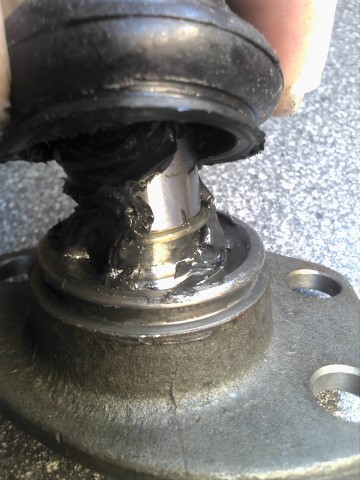 Uudet alapallot, MOOG rasvaakin löyty yllättävän paljo. Nipan ajattelin laittaa alapuolelle kun kokemuksesta tiedän että sinne rasvaa ei ole eksynyt. Tarviiko porata vaikka millinen juorureikä reunaan, ku muutenhan tuo ampuu pallon pois? Vielä kun löytäs nippoja, jonnekki ne laitoin... Siinä iskarin yläpään laakerissa on rasvaa, aivan täynnä, SKF.