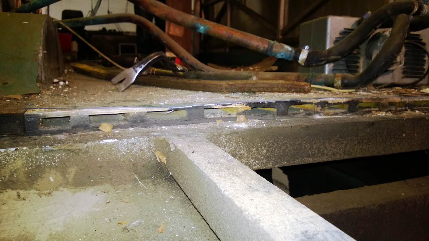 Ei mitään hajua, mutta vois kuvitella. Entisen omistajan aikana. Yritän paikkoa ja saada vakaaksi ja sitten pinnoittaa.