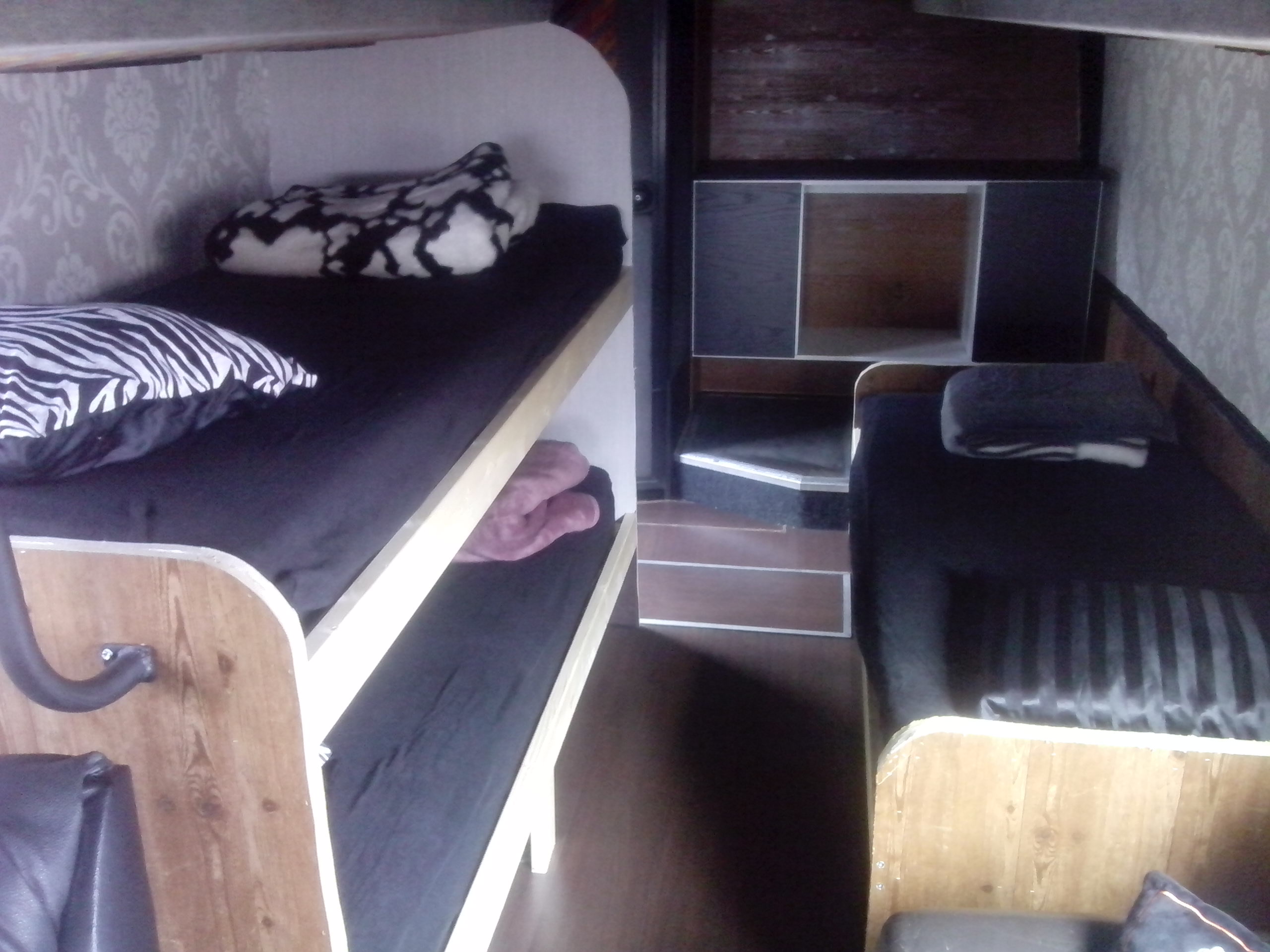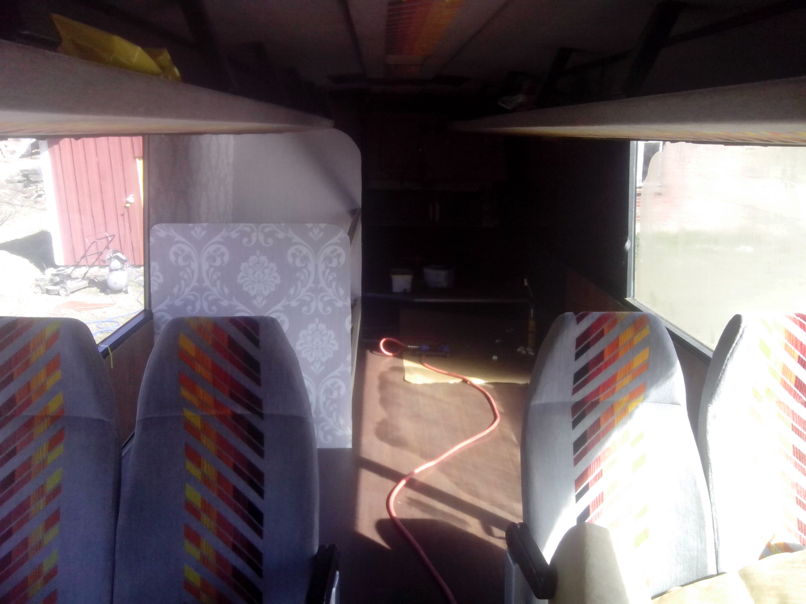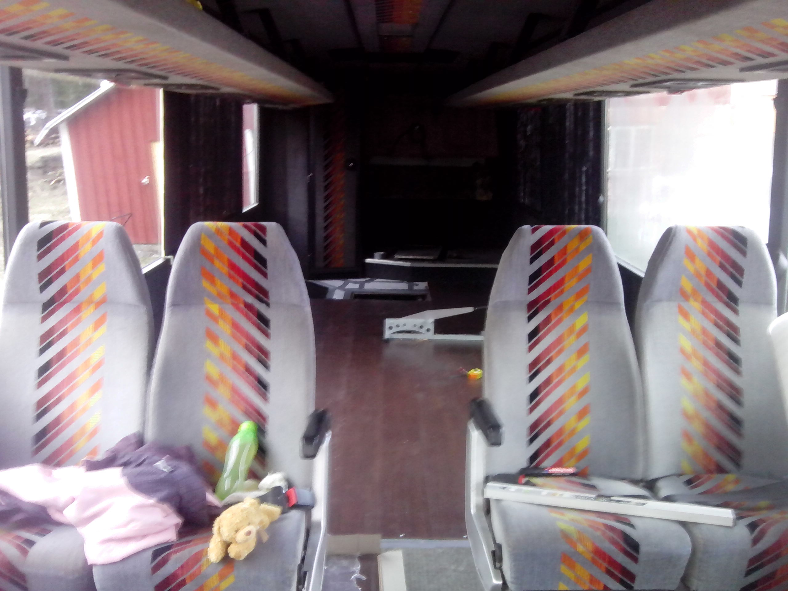 Autoon tulossa siis 1+8 paikkaa, ruokailuryhmä, olohuone, makuukammari 3 hlö (sohva sekä nahkatuoli jossa makuupaikka, yht 5 nukkuma paikkaa), minikeittiö, WC, ohjaamo. Vanhat sisävalot/lamput vaihdetaan ledeiksi.