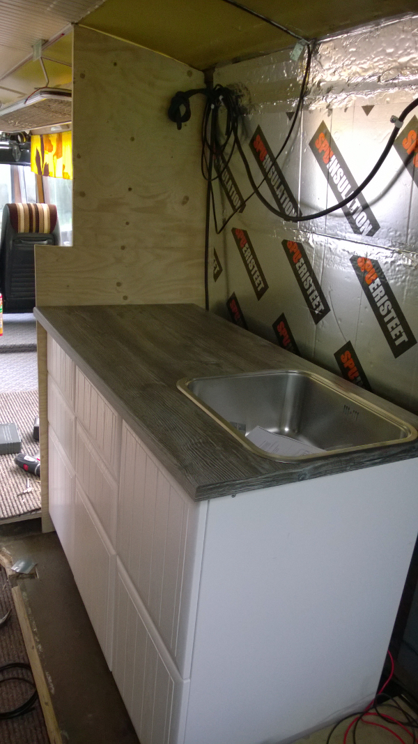 Sisustustöitä on jatkettu, akkuja vaihdettu ja akkujen välille kaapeli laitettu. Meillä on aika selkeä työnjako ollut tuossa tekemisessä. Vaimo tekee kaiken näkyvän(väliseinät, verhoilut, osien maalaukset) ja minä keskityn siihen, mikä jää piiloon, eli johtoihin ja letkuihin.