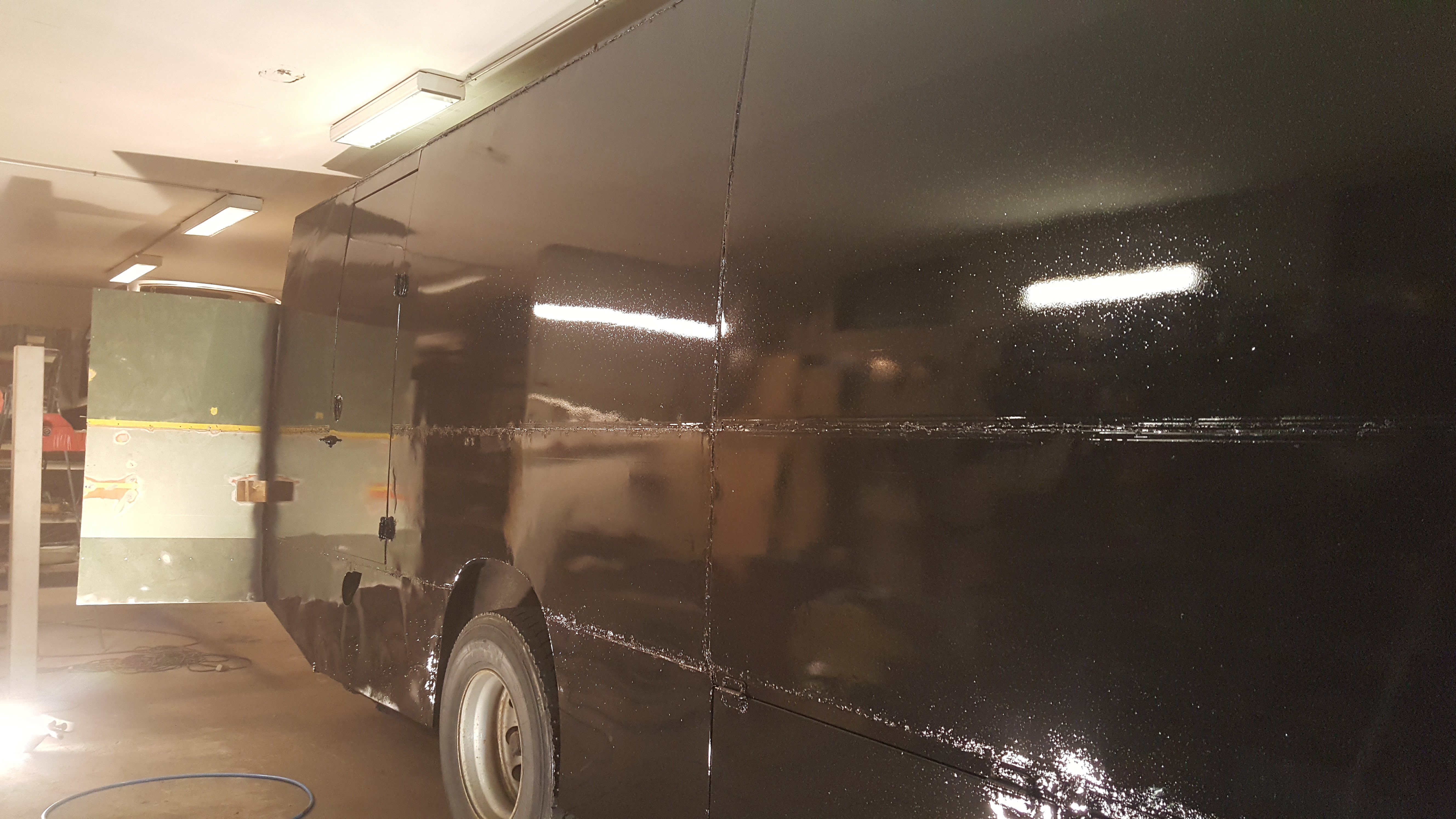 Ensimmäinen kylki saatu maaleihinsa. Puolihimmeä musta joka todellisuudessa aivan matta, tämän päälle kirkaslakka jonka joukossa kromi kidettä tms. Omastamielestä ihan kohtuullinen. Ja samaan aikaan kotona oli alettu hahmottelemaan uusia penkinpäälisiä.