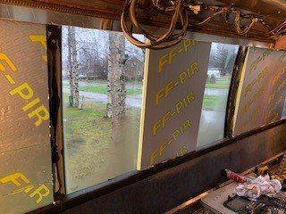 Tarkoitus tästä on tehdä talviasuttava asuntoauto jolla myös liikutaan, ohjaamo/matkustamo on siitä syystä erillään ja eristetty asuintilasta kokonaan väliseinällä että sais vähemmällä lämmittämiselle pysymään asuintilat lämpimänä talvella ja ehkäpä viileänä kesällä?