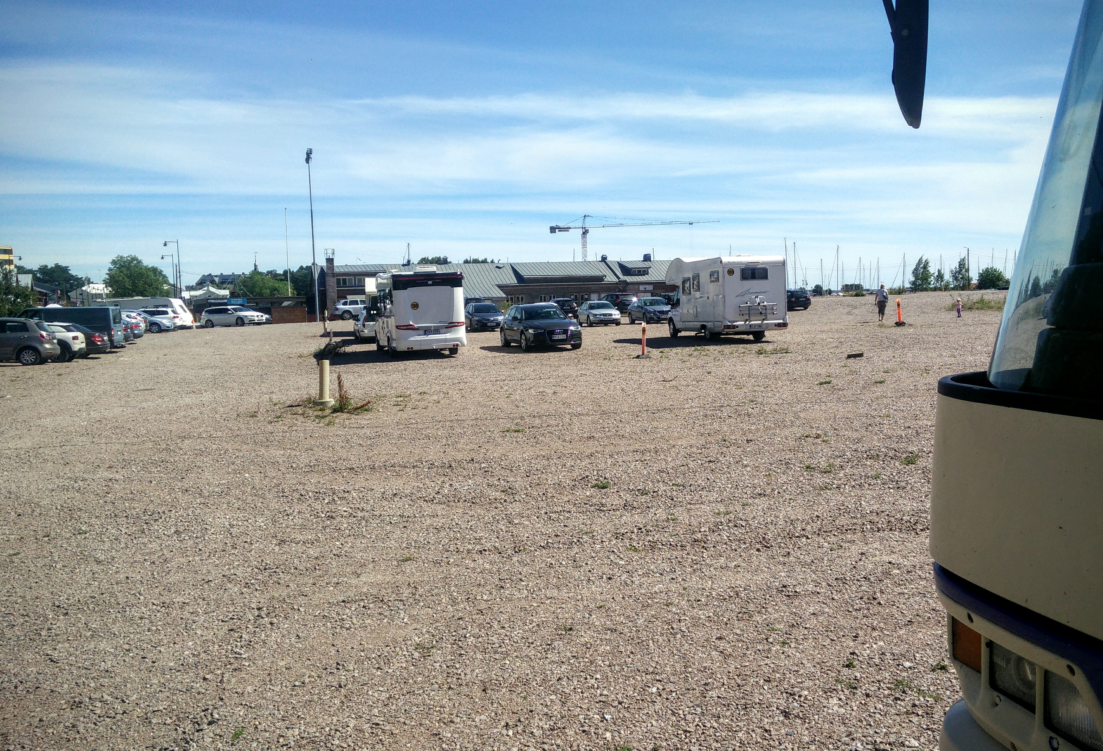 Linnankadulla on linja-autolle varattu kadunpätkä. Siinä olemme useasti pitäneet autoa. Talot varjostavat mukavasti, joten auto ei kuumene. Lyhyt matka torille, linnaan ja uimarannalle.