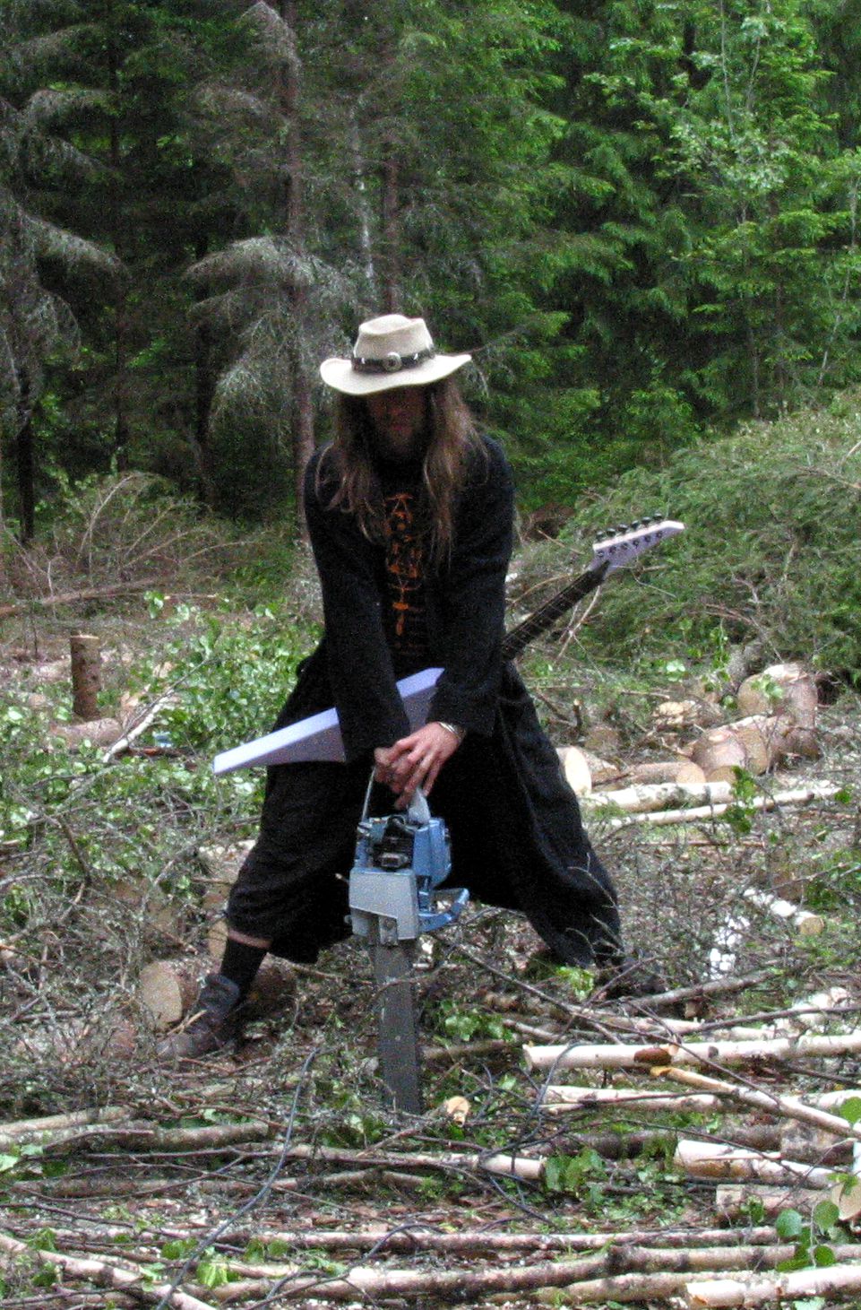 On tuolla jossain yksi Pioneer-äänisaha, jonka laippaan kitaristimme uhopäissään kirjaili "Cut The Sucker" ja toisella puolella seisoo "Everyone must die". On siinä myös punaista maalia. Saha roikkui himmelinä äänitysstudioni katossa -96.