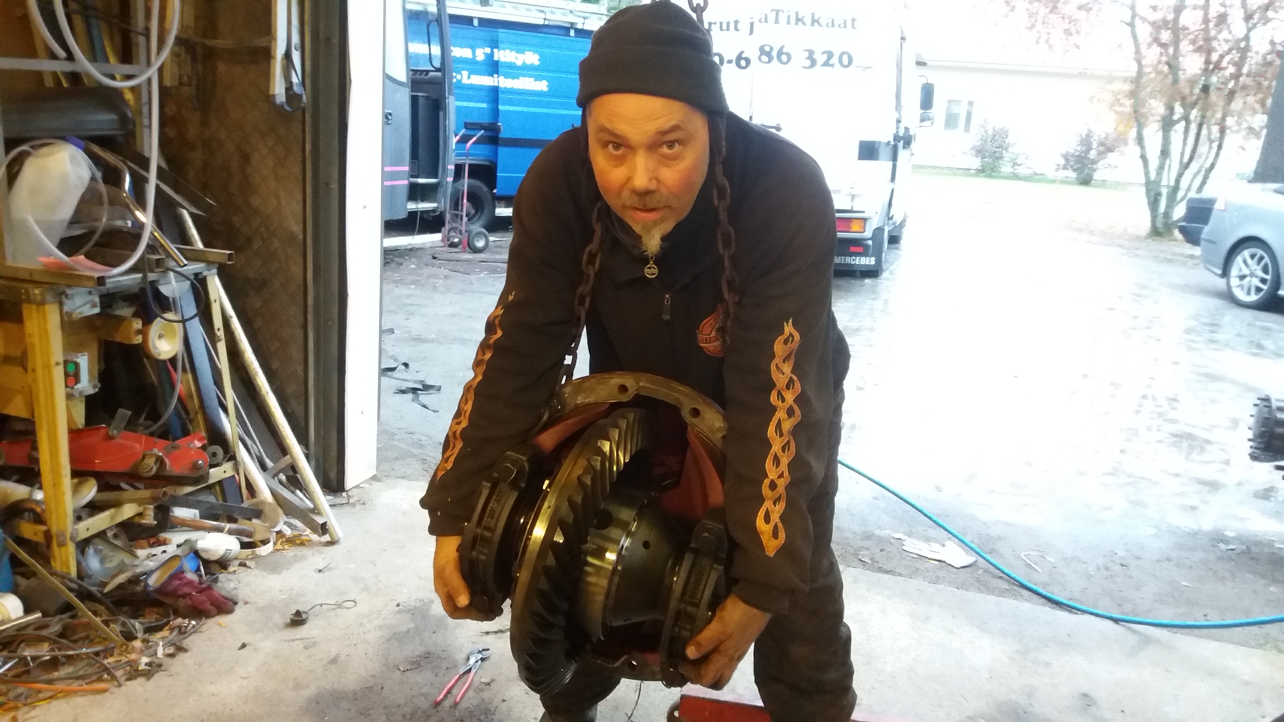 Perän vaihto operaatio käynnissä. on se vaan raskas mötikkä. Ostin koko takaakselin ja