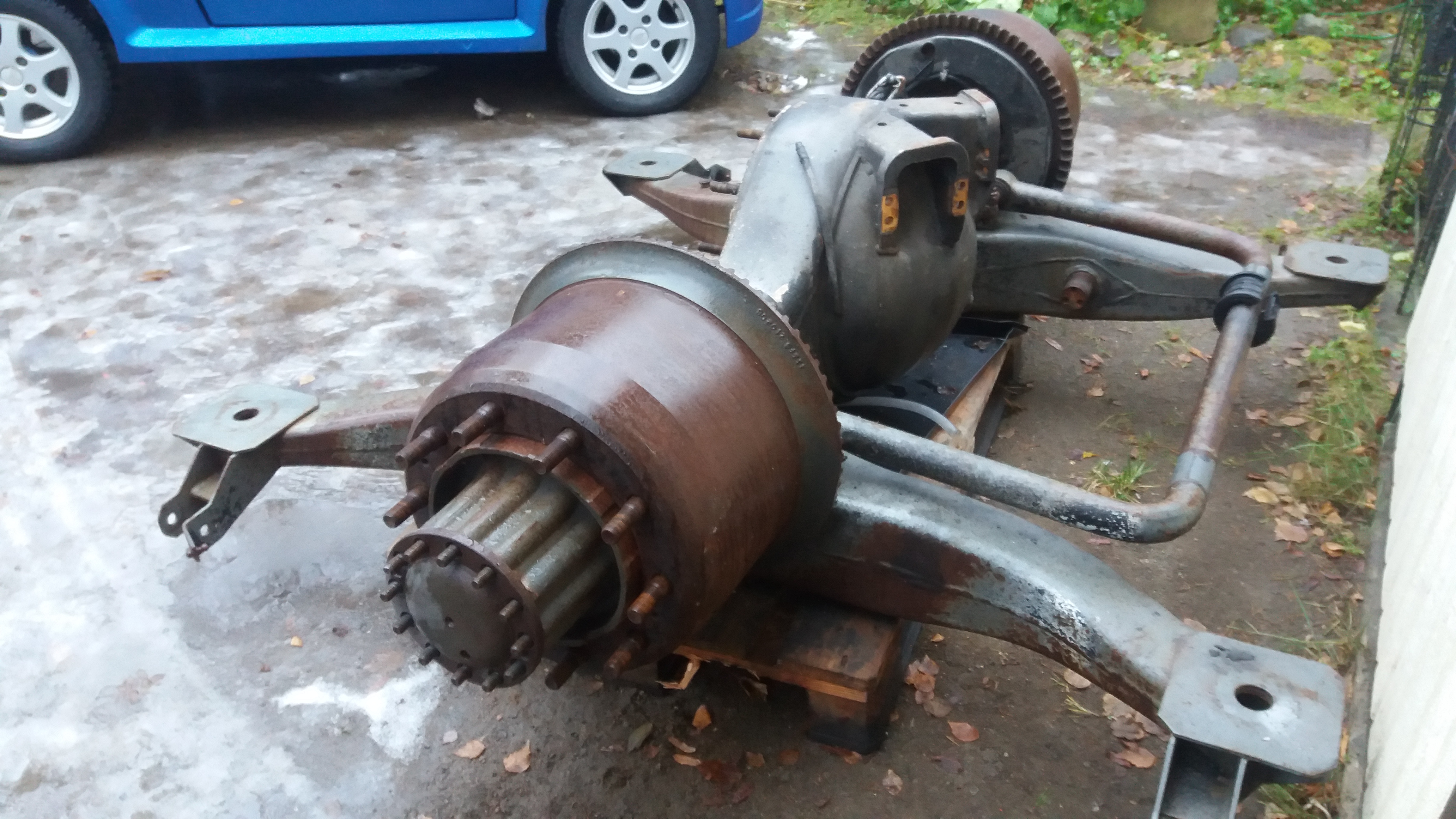 Perän vaihto operaatio käynnissä. on se vaan raskas mötikkä. Ostin koko takaakselin ja