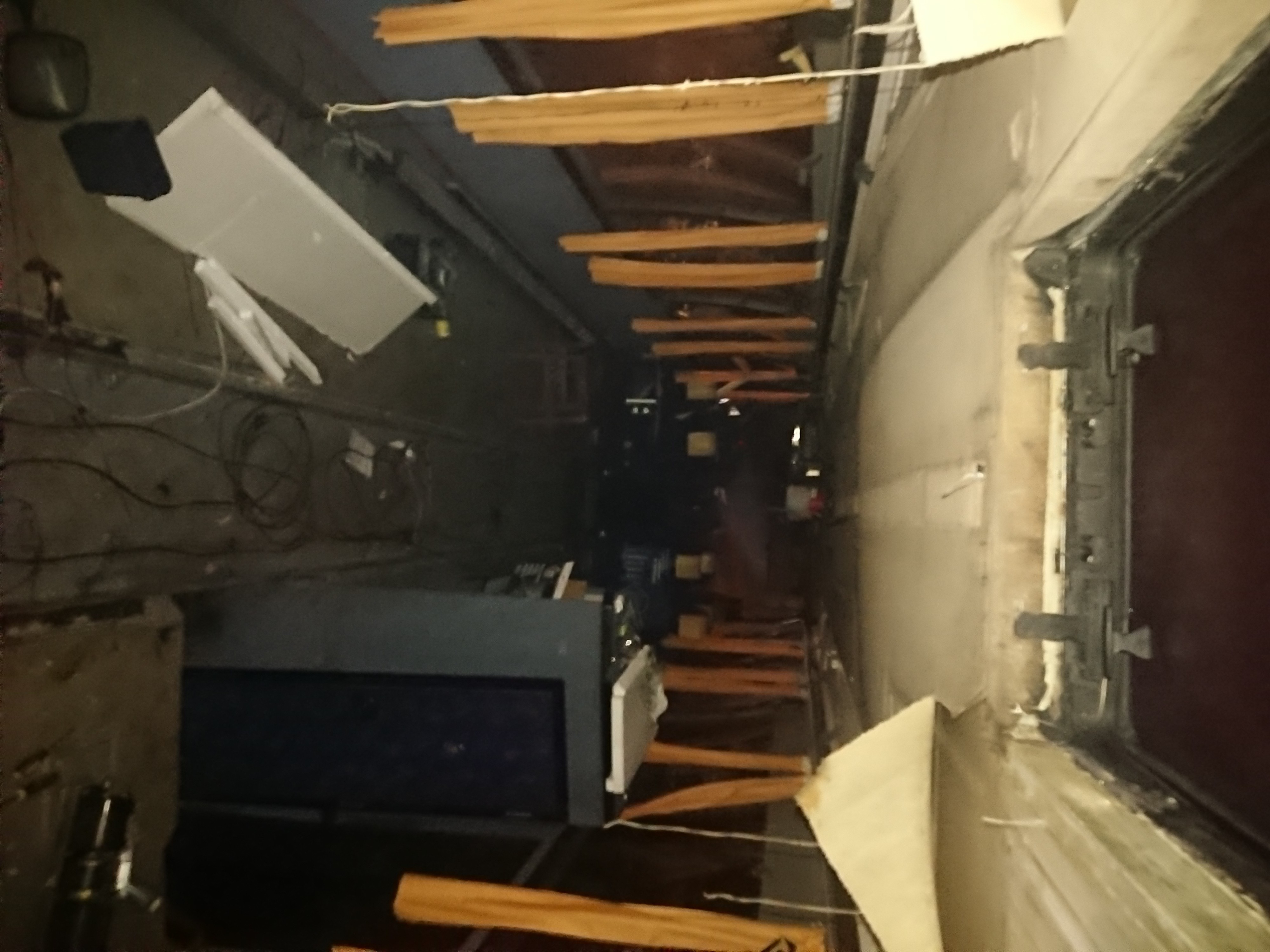 Lattia tuli tasattua, sais aloittaa eristyksen ja levytyksen. 20x40mm ja 60x40mm profiili putkea laitoin, niihin kiinni 15mm filmivaneri niin luulis olevan tukeva. Täytyy pönkätä ruumatilasta lisää jos jää notkumaan... :D