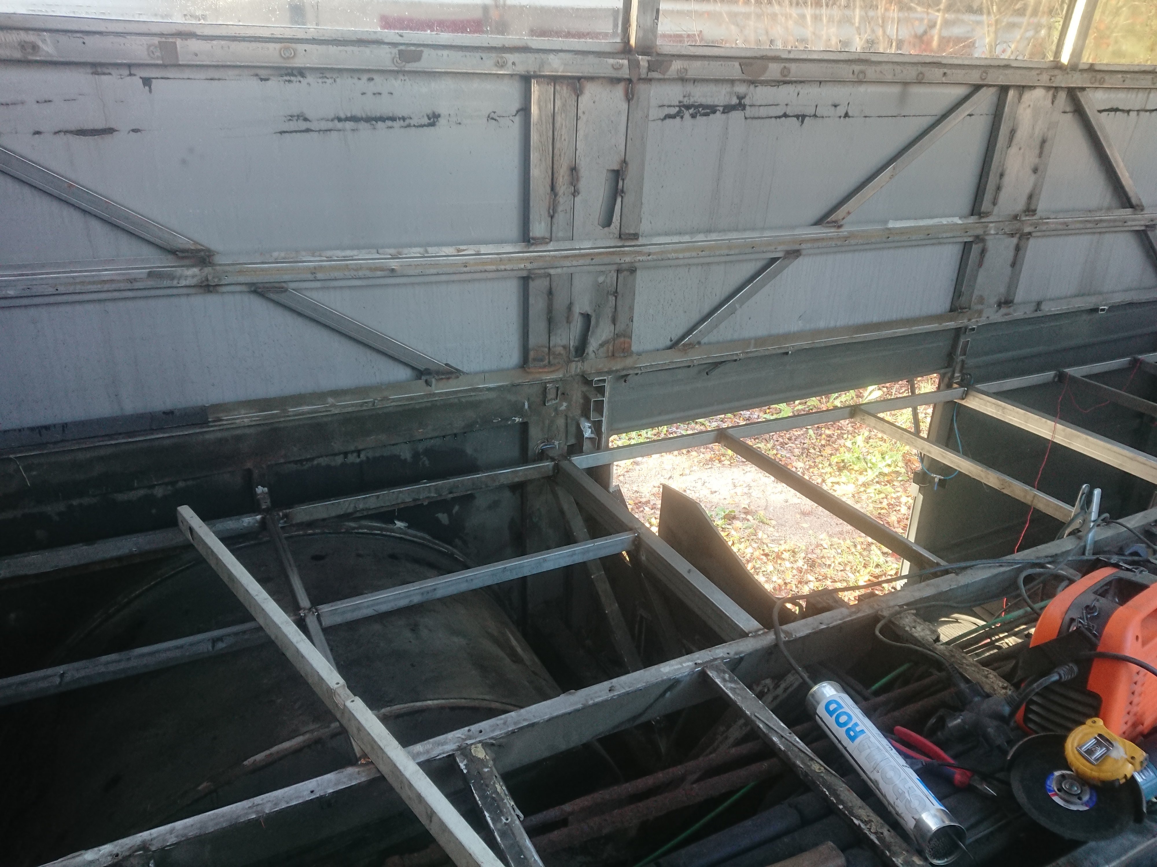 Lattia tuli tasattua, sais aloittaa eristyksen ja levytyksen. 20x40mm ja 60x40mm profiili putkea laitoin, niihin kiinni 15mm filmivaneri niin luulis olevan tukeva. Täytyy pönkätä ruumatilasta lisää jos jää notkumaan... :D