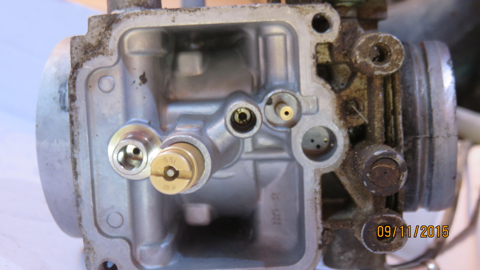 Onko kaasutin klemmarilla kumikurkussa? Jos on niin mahtuko kääntämään kaasuttajaa kyljelleen ja irroitamaan sakkakuppia ja uudelleen asentamaan neulaa? Toinen on varmaan vasemman puolen sarvikosta ryypynvaijeri. Onko se mikuni kaasutin vai lortto?