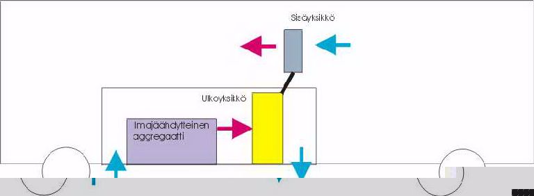 Tuollasta kaavion mukaista ajatusta olen pyöritellyt päässäni. Parin kilon tehoinen ilmajäähdytteinen keino-IVO suljetussa peltikotelossa ulkoyksikön kanssa. Ilmanotto ja poisto pohjan kautta.