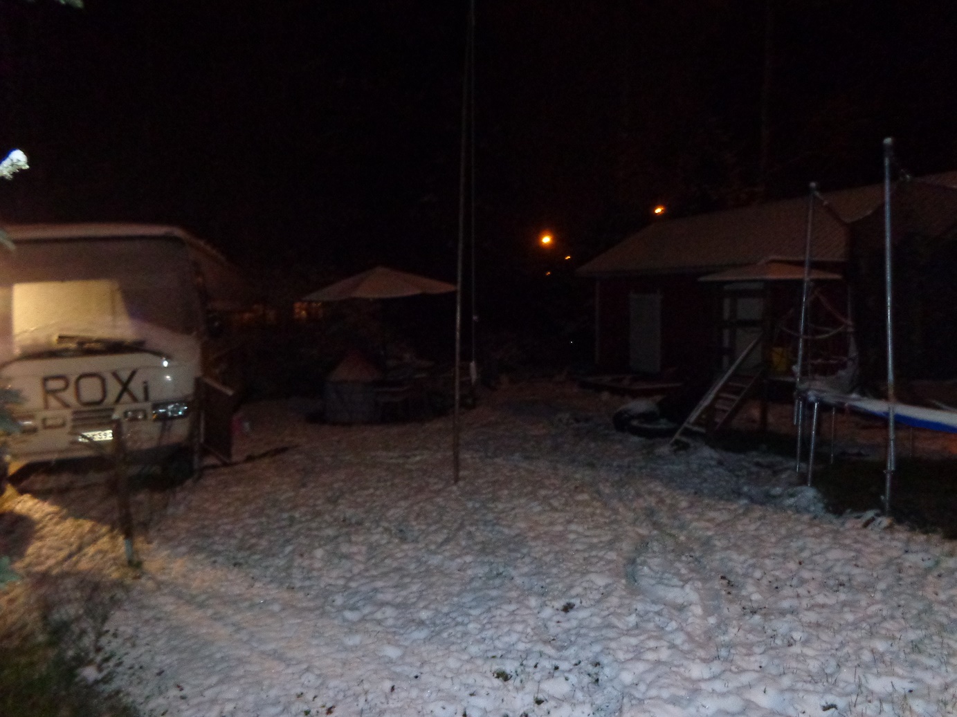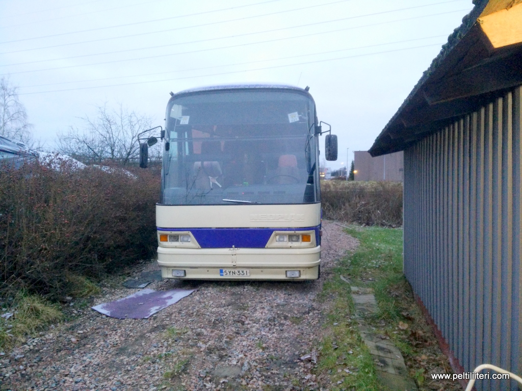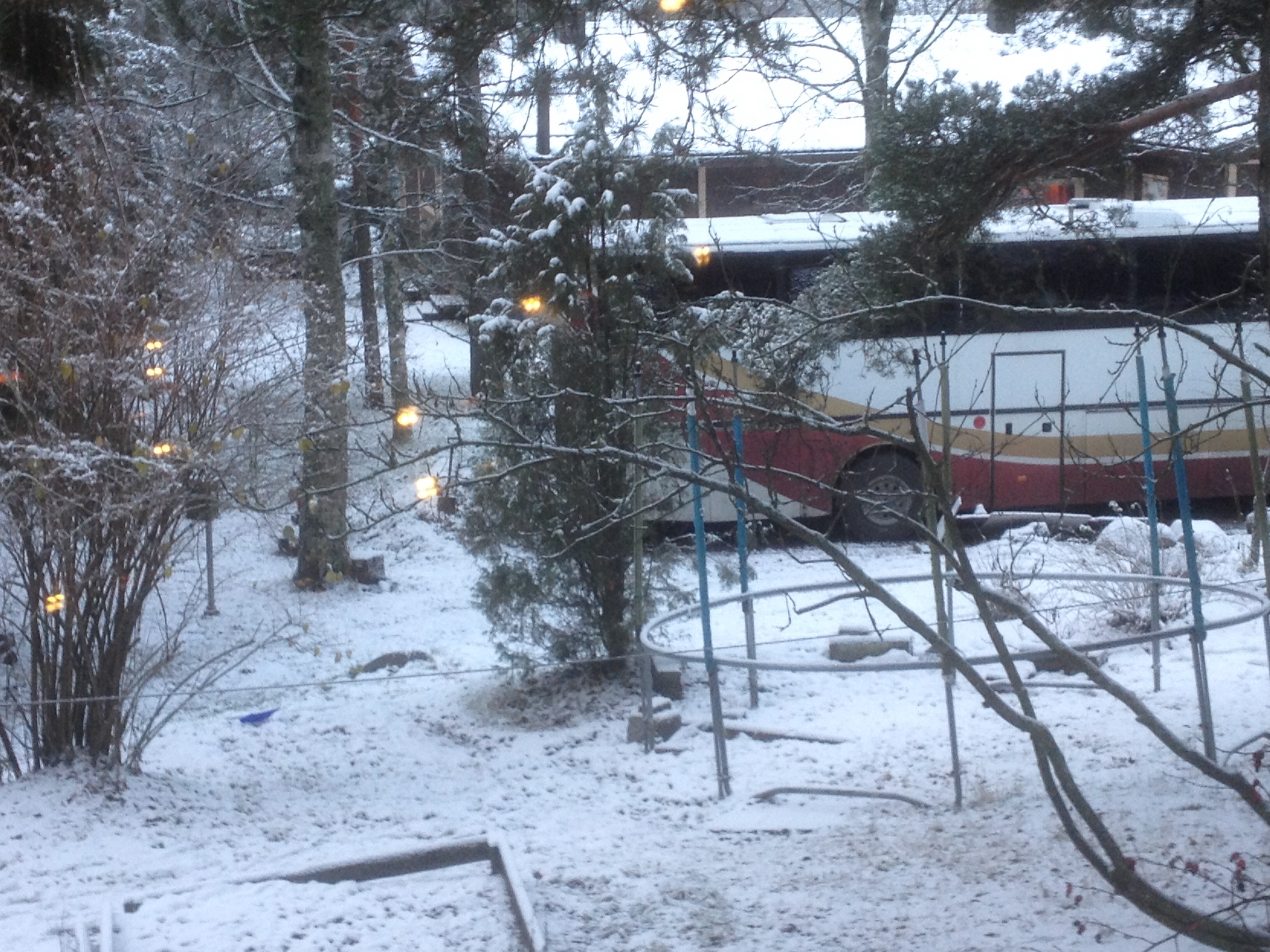 Trampoliini vielä purkamatta.. Kamera vääristi näköjään vähän bussin muotoja..