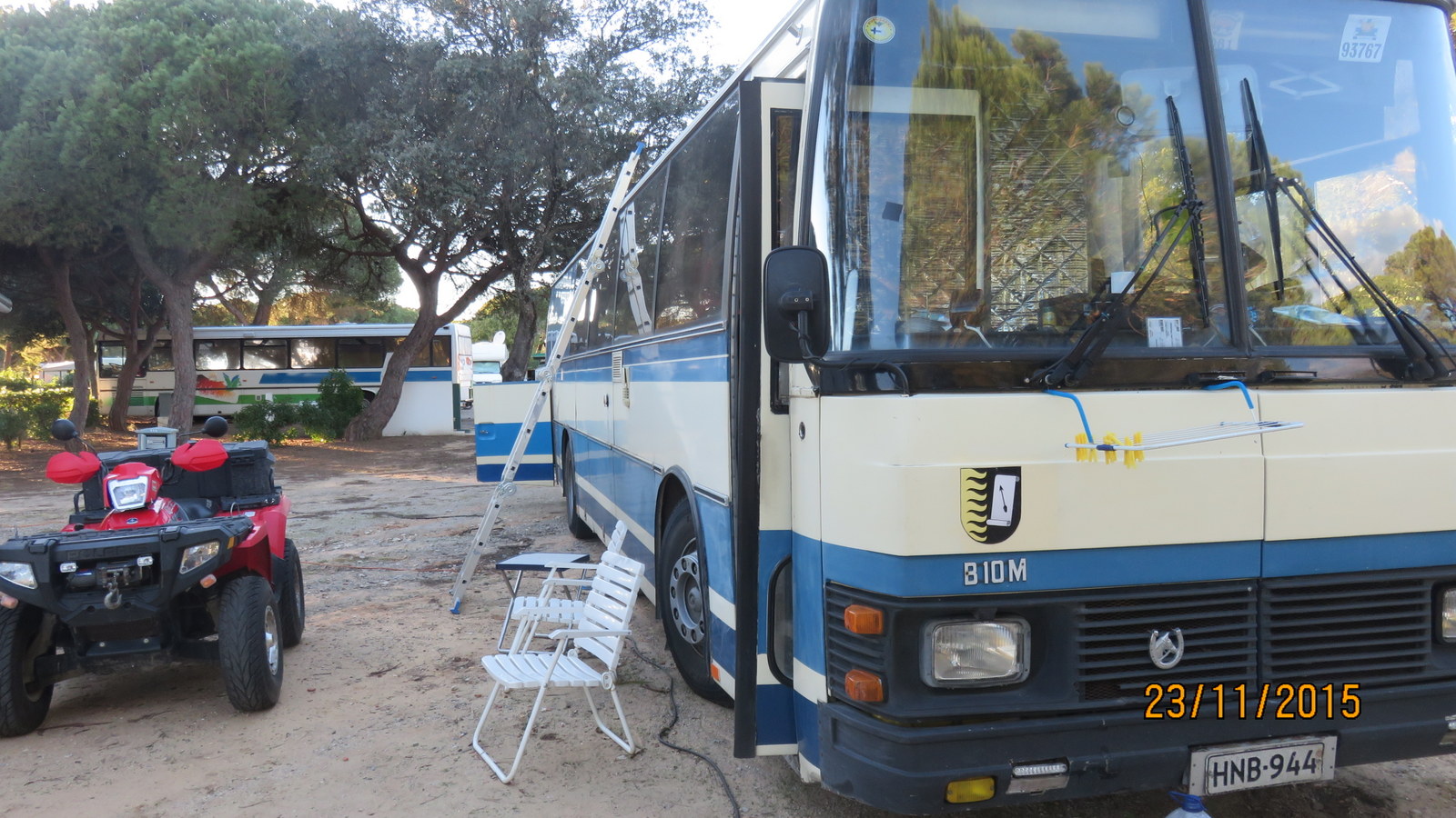 Ei ole täällä etelässä lunta ei. Täkäna on parkissa Ranskalainen bussi