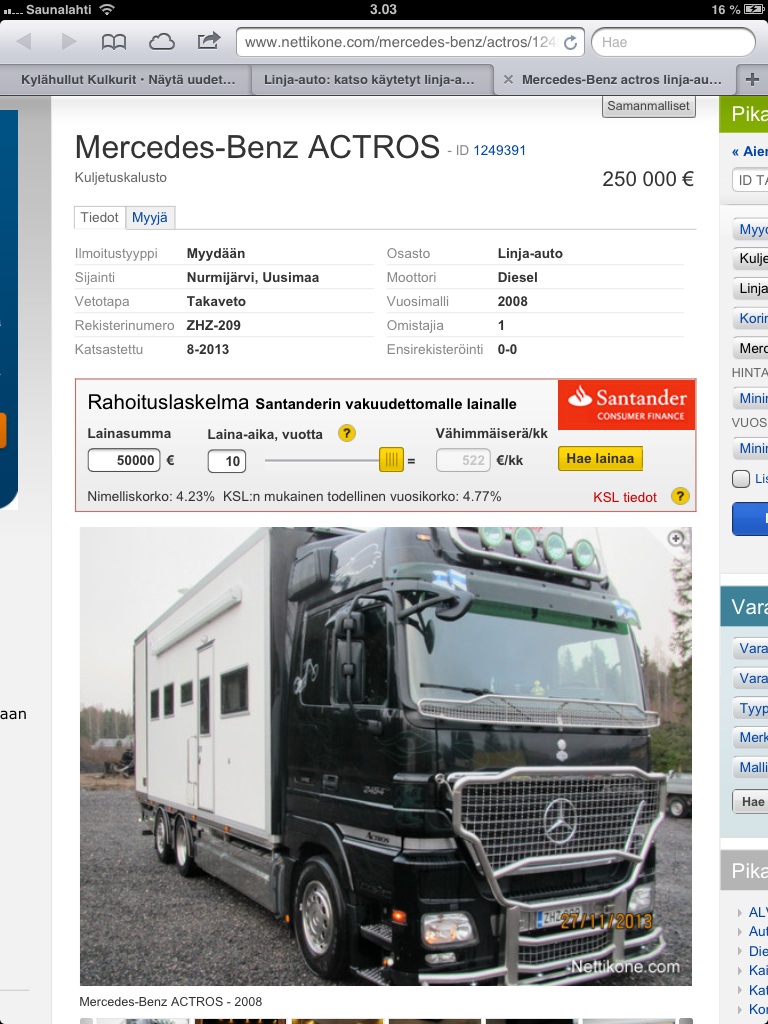 Viijenkympin kyyti: http://www.motorsportads.com/motorhomes ... qOnSOInPfA Tämäkin soveltuu postinjakoon kesälomalla.