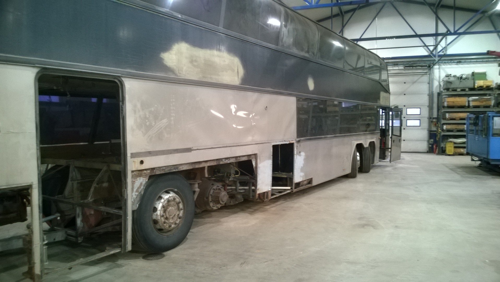 Ennen ja jälkeen. Nyt olis kaikki pussilautaset ja iskari kiinnikkeet uusittu. Ja kaikki huonot putket vaihdetut. Seuraava vaihe hiekkapuhallus ja maalaus ennen pyöräkotelopellitys...