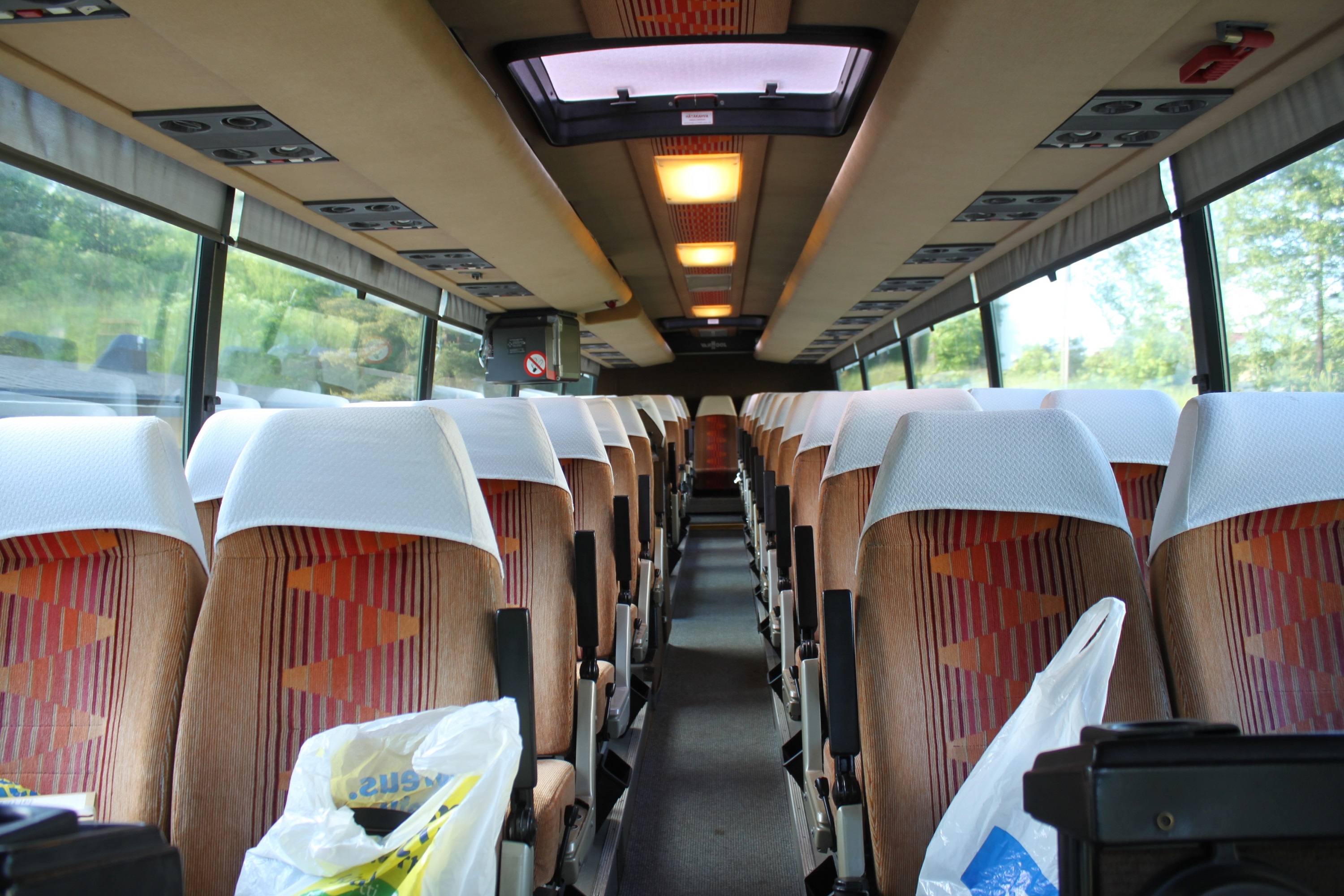 Nätti Vanhool. Ylinmääräiset penkit viidakkoon ja Lähetystorilta runkopatja ja pakastin. Ei ku kovaa ajoa...