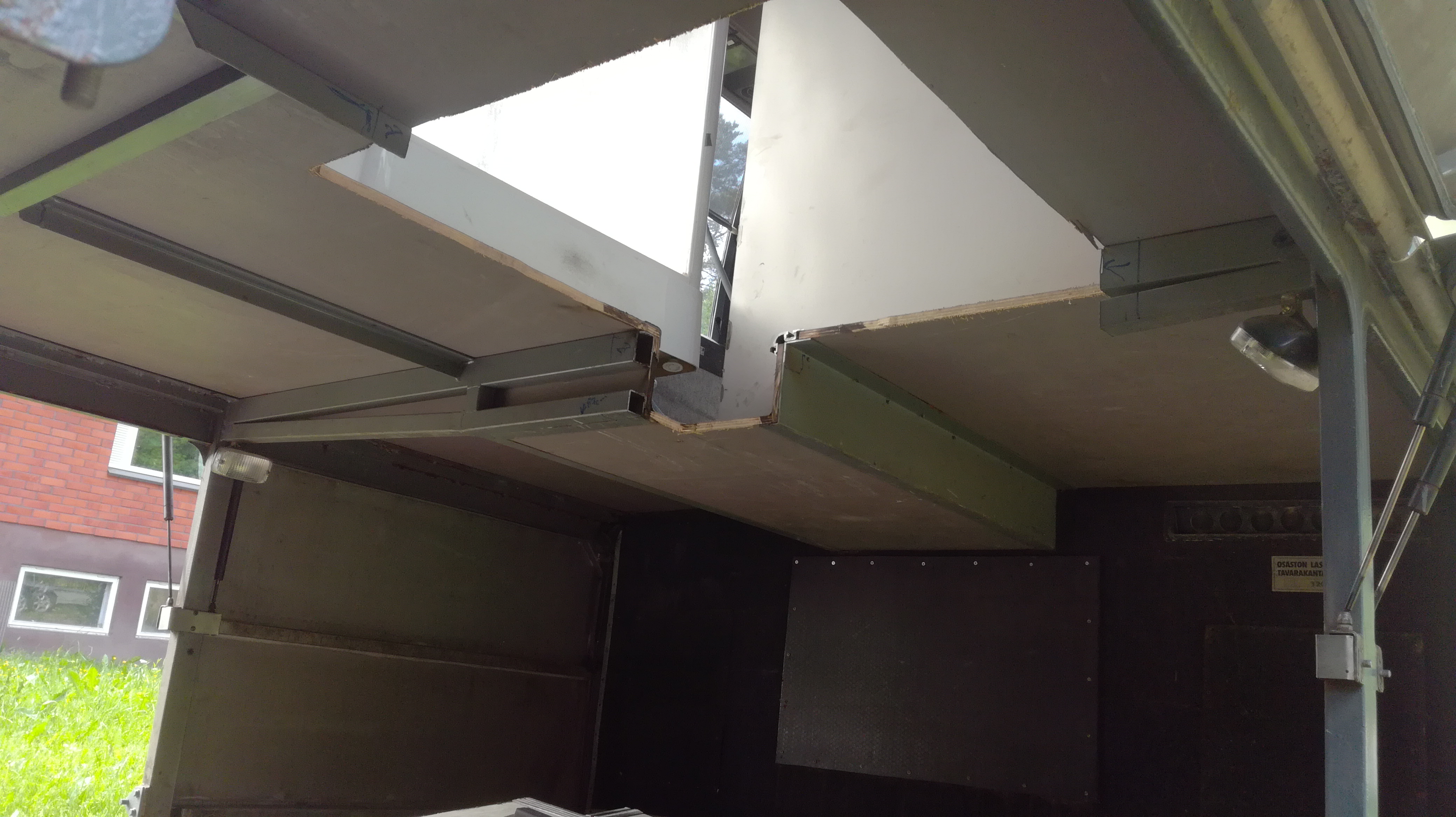 kyllä rakenne vahvuudet huomioitiin, kuva siitä vaiheesta kun lattiaan oli saatu reikä tehtyä ja sen jälkeen on hitsattu profiilia useita metrejä. Tuo suihkukaapin sovitus ja lattian madallus oli koko projektin vaativin osa kun piti huomioida että vesi ja likavesi säiliötkin mahtuu muutan apulaitteen lisäksi. no tosiaan Tuuriin ollaan tulossa jos perjantaina lääkäri ei halvauta käsiä.......