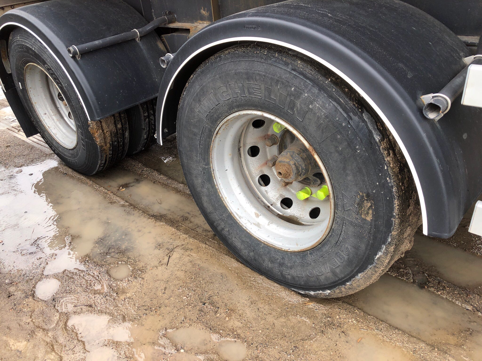 Tuon näköinen rengas ajetaan pinta loppuun perävaunussa